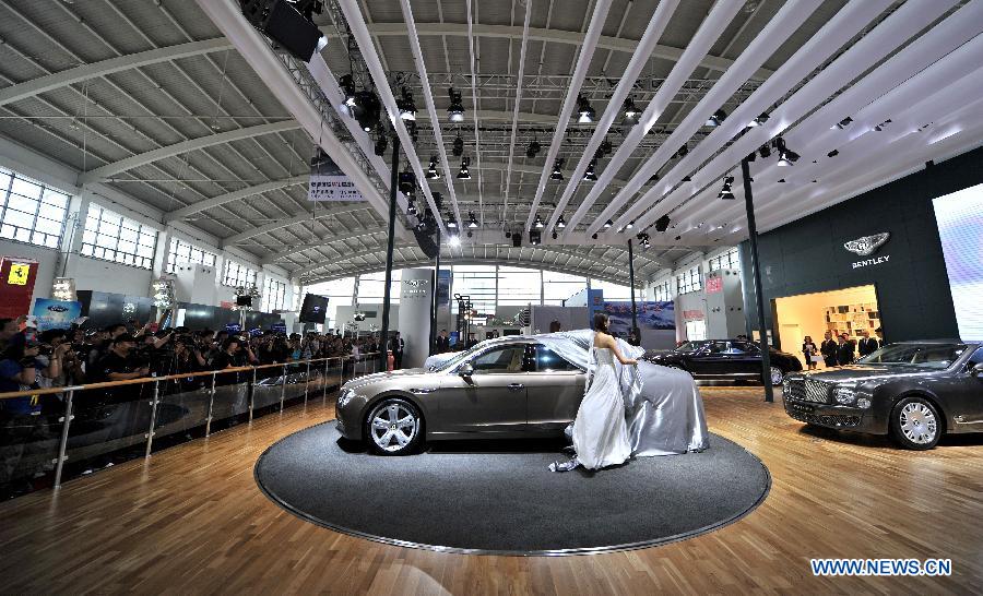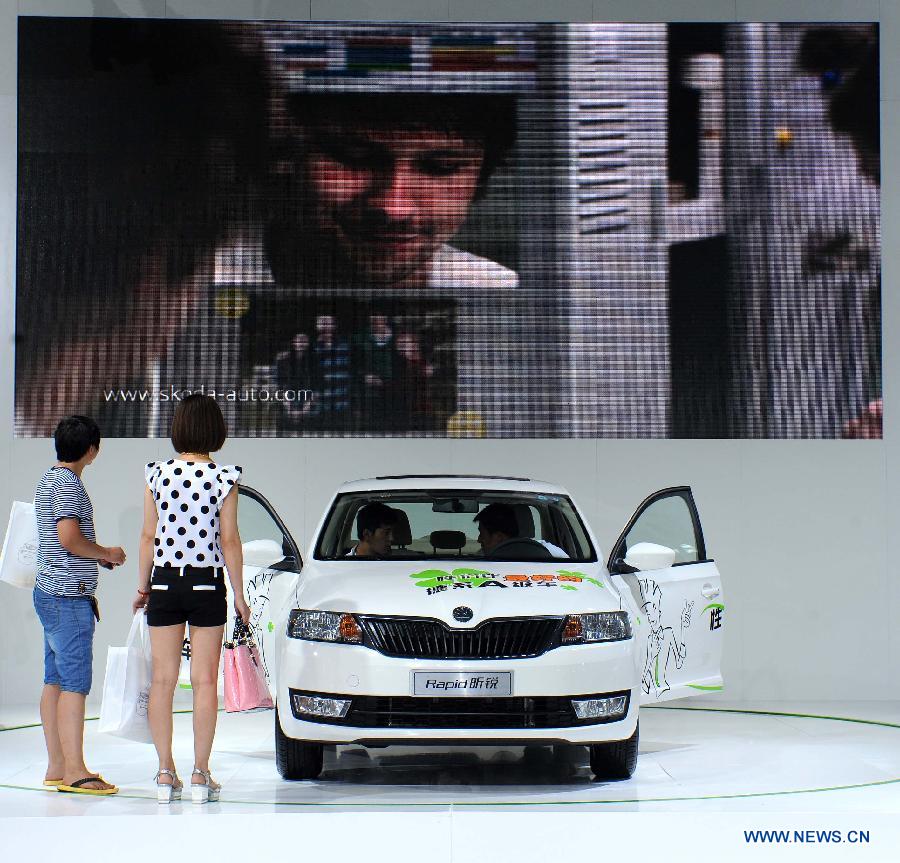 A model shows a vehicle at the 12th Shenyang International Automobile Industry Expo in Shenyang, capital of northeast China's Liaoning Province, June 27, 2013. (Xinhua/Yao Jianfeng)