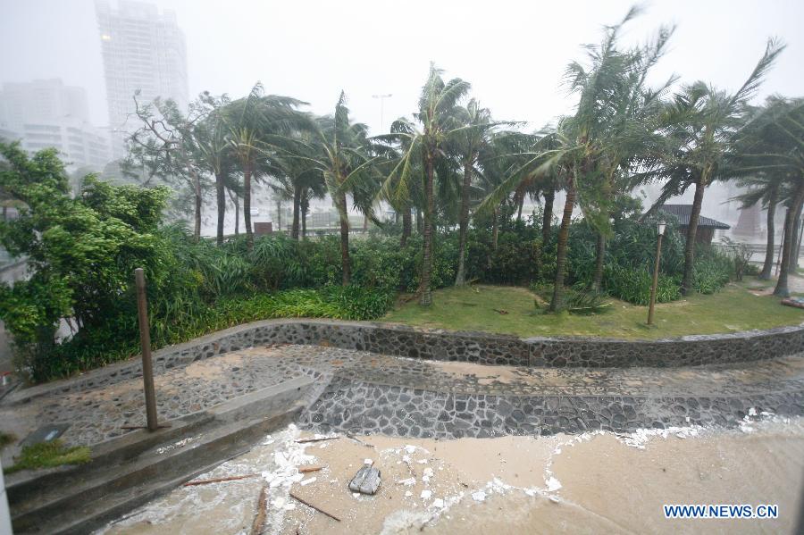Photo taken on July 2, 2013 shows the surged waves stired up by the tropical storm Rumbia in Zhanjiang, south China's Guangdong Province. Tropical storm Rumbia landed on Zhenjiang on Tuesday morning and brought torrential rain and gales to some areas in Guangdong Province. (Xinhua/Liang Zhiwei)