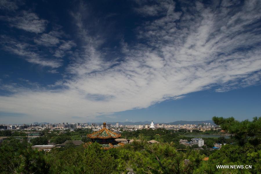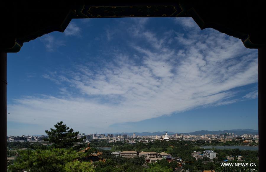 Photo taken on July 2, 2013 shows the scenery viewed at Jingshan Park in Beijing, capital of China. A rainstorm on Monday night brought Beijing with fine weather. (Xinhua/Luo Xiaoguang)