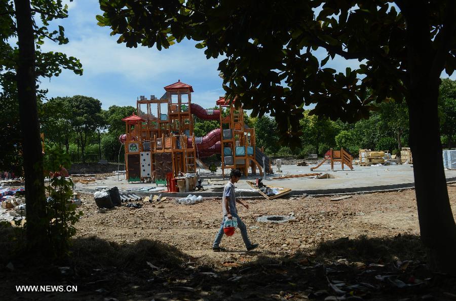 Photo taken on July 2, 2013 shows entertainment facilities at an Angry Birds theme park in Haining, east China's Zhejiang Province. The Angry Birds theme park, the first of its kind in China, is under construction and is expected to open to the public in October. Angry Birds, created by the Finland-based Rovio Entertainment, is a popular game for smartphones and tablet computers. (Xinhua/Han Chuanhao)
