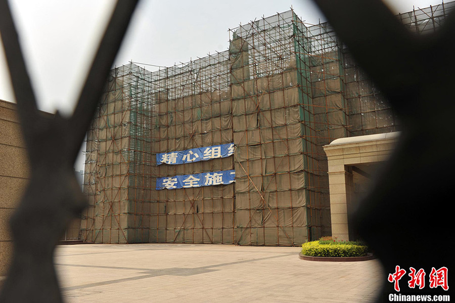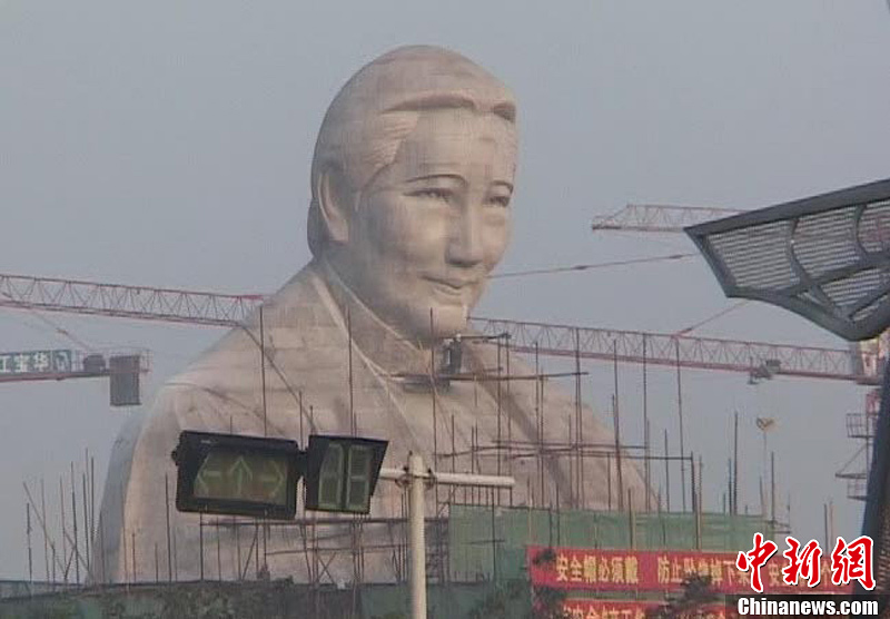 An unfinished statue of Soong Ching Ling was torn down in Zhengzhou, capital of Central China’s Henan province, the CNS reporter learned on July 3, 2013. The Henan Soong Ching Ling Foundation planned to build the 27-meter stone statue with an investment of 120 million yuan ($19.5 million) in August, 2011. No explanation has been offered for the demolition. File photo shows a 24-meter stone statue of Soong Ching Ling is going up in Zhengzhou, capital of Central China’s Henan province, on Nov 3, 2011. [Photo/Hu Ying]