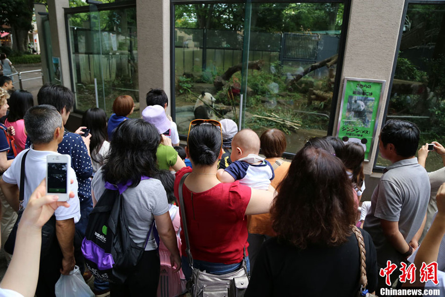 Giant Panda Zhen Zhen is seen at Ueno Zoo, Tokyo on July 4, 2013. The eight-year-old panda has “rested” for one month after showing signs of pregnancy. On July 2 Zhen Zhen met visitors again and until now there is no certainty about its pregnancy. [Photo: CNS / Gao Yue]