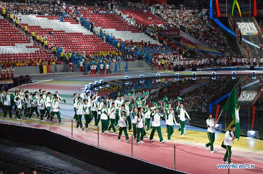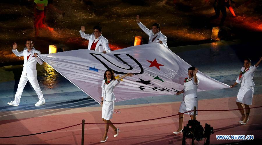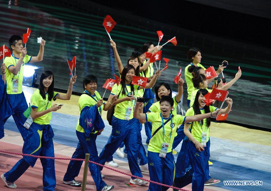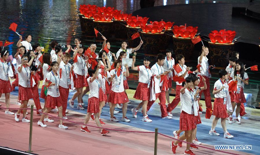 Chinese Delegation enters the stadium during the opening ceremony of the Summer Universiade in Kazan, Russia, July 6, 2013. (Xinhua/Jiang Kehong)