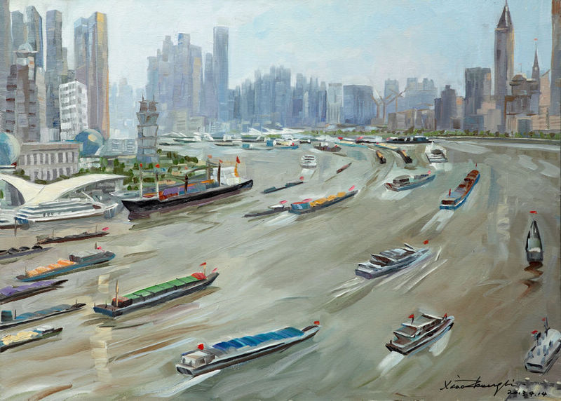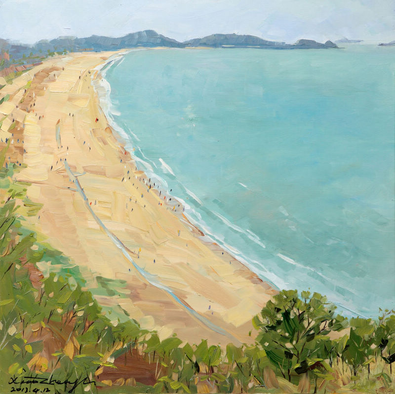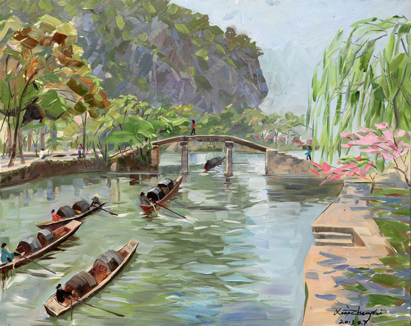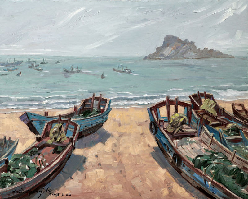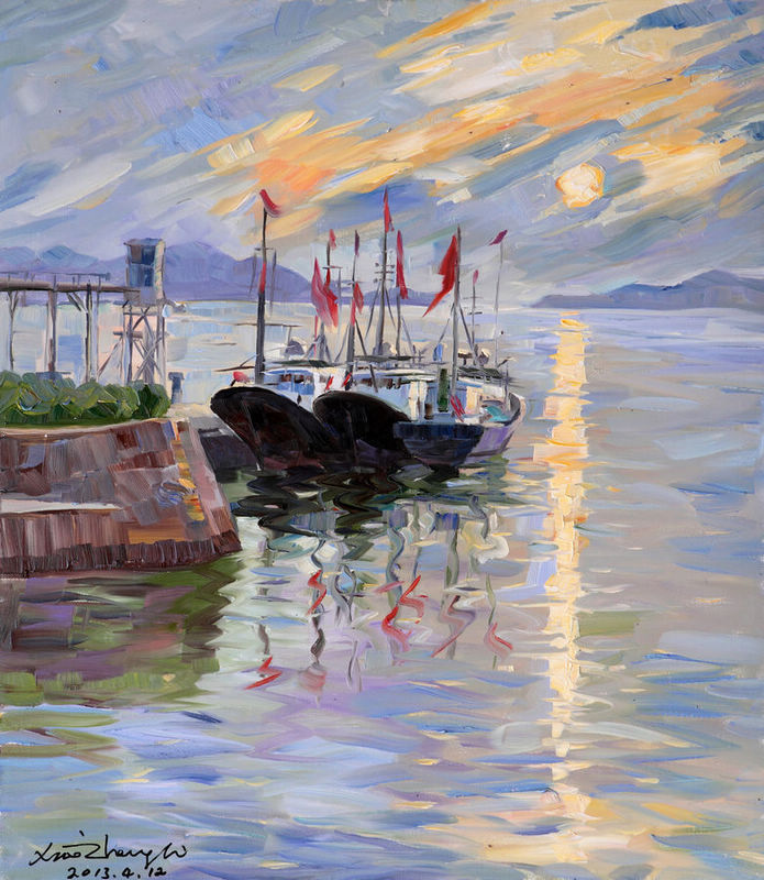 "Sunset: Daxi'ao Village, Zhujiajian Town, Zhoushan City" (80cmX70cm), April 12, 2013. Chinese Australian oil painter Li Xiaozheng's new exhibition themed "Jiangnan Charm" opened on July 7 at the Roundness Art Gallery in Beijing's Songzhuang, the largest art zone in both China and the world. The exhibition features 28 artworks created by Li during his 34-day fieldtrip, between March and April of this year, to Jiangnan. (Photo: china.org.cn)
