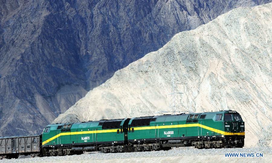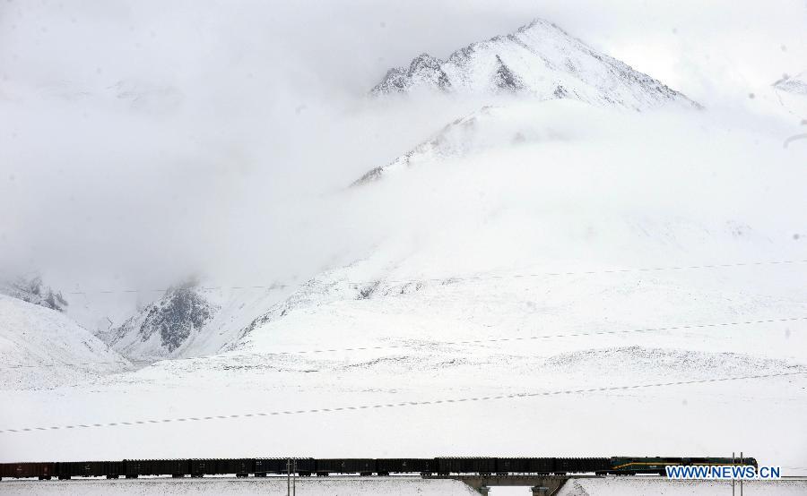 A freight train runs on the permafrost region of the Qinghai-Tibet Railway in northwest China's Qinghai Province July 9, 2013. Within seven years after its operation, the Qinghai-Tibet Railway, the longest and highest railway in the world, has carried nearly 64 million passengers and 300 million tonnes of goods. (Xinhua/Hou Deqiang)
