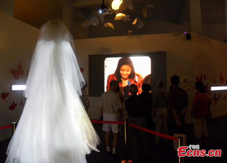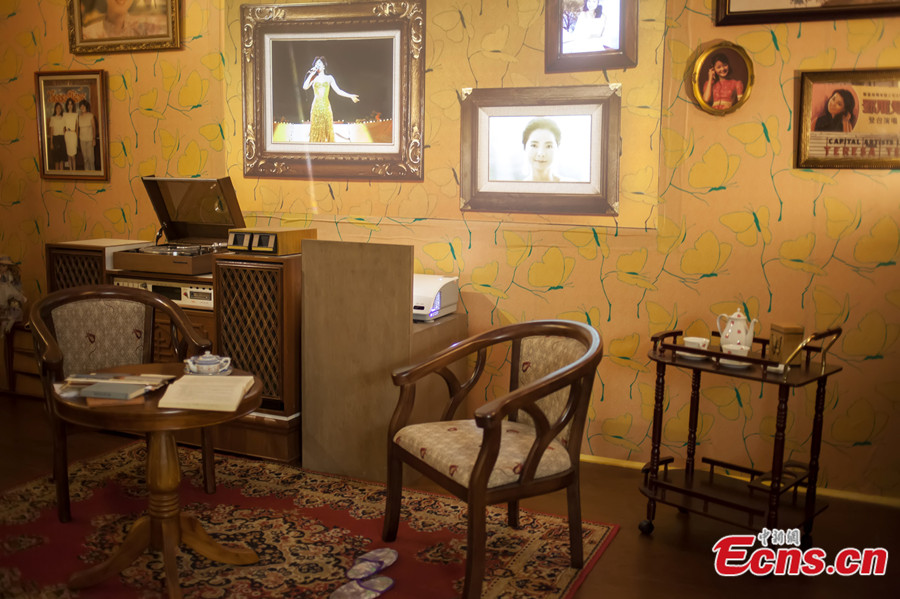 An exhibition displaying the albums, clothes and other belongings of late Taiwanese singer Teresa Teng in eastern China's Jiangsu province has attracted more than 20,000 visitors by July 9, 2013. The furnishings of Teng's living room in Hong Kong are displayed on the exhibition. [Photo: CNS/Li Ji]