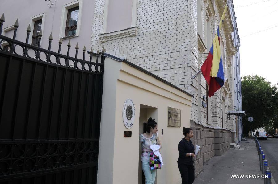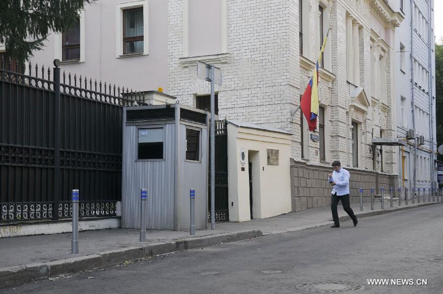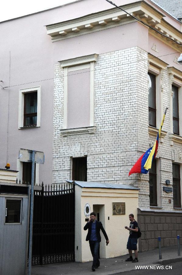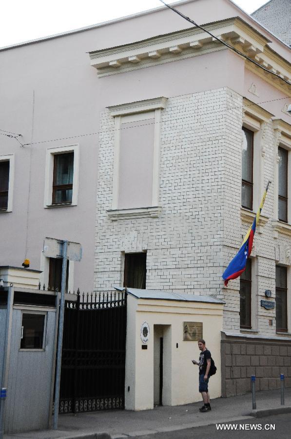 A man passes by the Venezuelan Embassy to Russia in Moscow, July 9, 2013. U.S. intelligence contractor Edward Snowden has agreed to seek political asylum in Venezuela, a senior Russian lawmaker said on Tuesday. (Xinhua/Liu Hongxia)