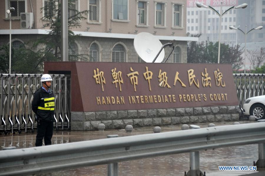 Journalists wait outside the Handan Intermediate People's Court in Handan City, north China's Hebei Province, July 10, 2013. The trial of Wang Shujin, a man from Hebei who has confessed to crimes for which another man has already been executed, re-opened here on Wednesday. Nie Shubin was executed in 1995 at the age of 21 for the 1994 rape and murder of a woman in the provincial capital of Shijiazhuang. After Wang was apprehended by police in 2005 for three separate rape and murder cases, he confessed to also having raped and murdered the woman in Shijiazhuang.(Xinhua/Zhu Xudong)