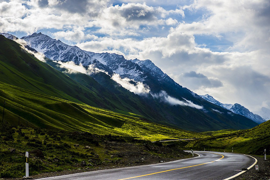 The Dushanzi-Kuqa Highway that passes through the Tianshan Mountains in Xinjiang suffers from frequent landslides, mud-rock flows and avalanches. It takes risks to explore the stunning beauty along the highway.(iCrossChina/Yu Fei)