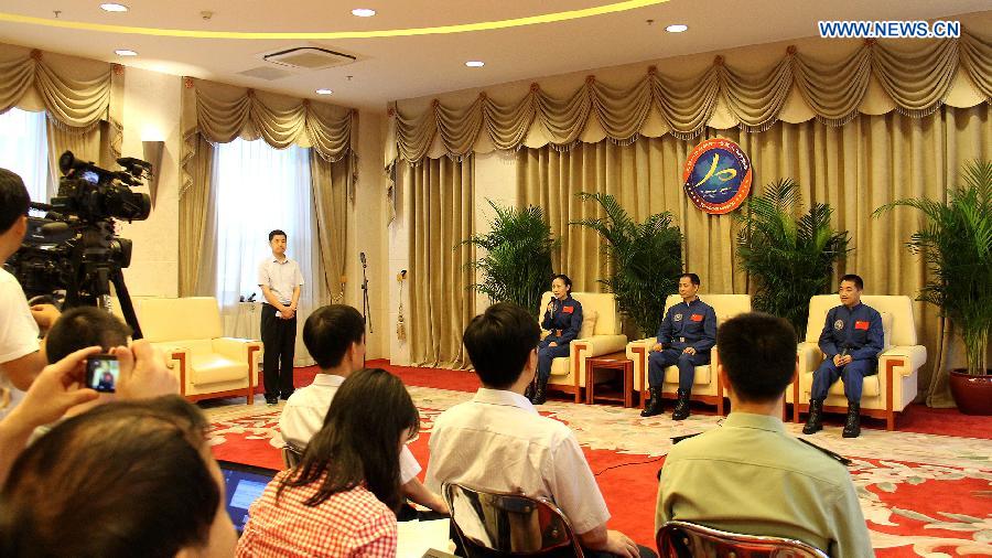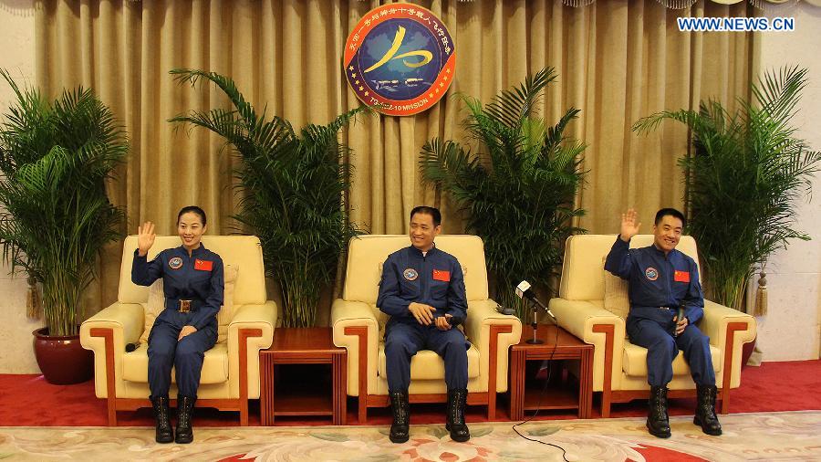 Shenzhou-10 astronauts meet press after medical quarantine (1/5)
