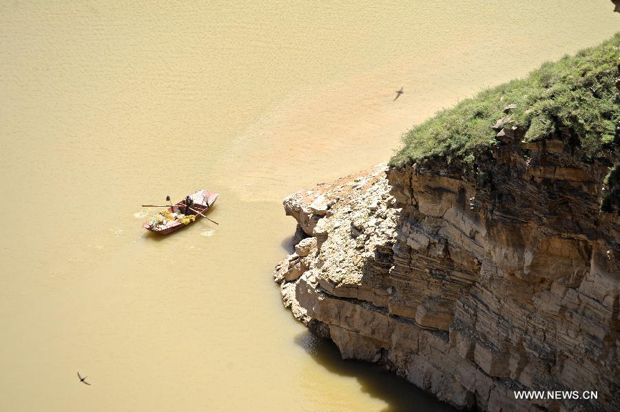 A section of Great Wall built in Ming dynasty (1368-1644) twists on cliff along the Yellow River in Laoniuwan geopark in Hohhot, north China's Inner Mongolia Autonomous Region, July 16, 2013. The Great Wall meets the Yellow River in Laoniuwan, which was turned into a geopark in December of 2012 and opened to the public on July 16, 2013.(Xinhua/Jin Yu)