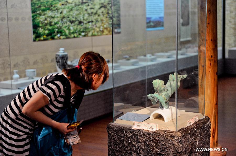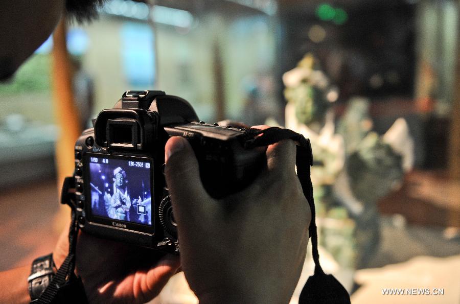 A visitor takes a photo of an exhibit at a public exhibition presenting elaborate antiques of the Xixia Kingdom at the Heilongjiang Provincial Museum in Harbin, capital of northeast China's Heilongjiang Province, July 16, 2013. Xixia (1032-1227), or Western Xia, was a feudal kingdom established by the Tangut ethnic group at the eastern end of the ancient Silk Road. Its territory largely overlapped today's Ningxia Hui Autonomous Region in northwest China. (Xinhua/Wang Song)