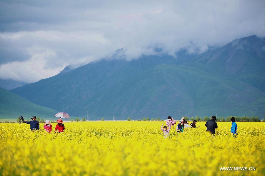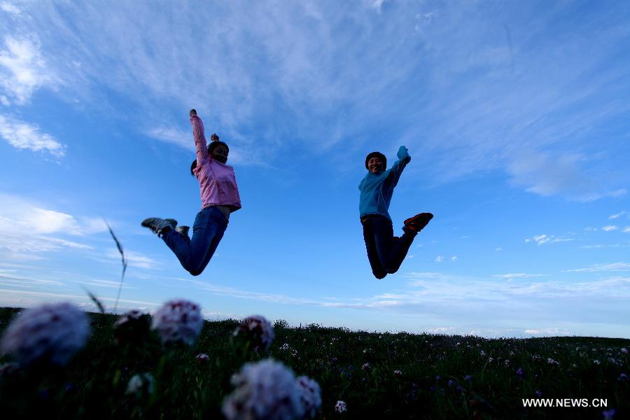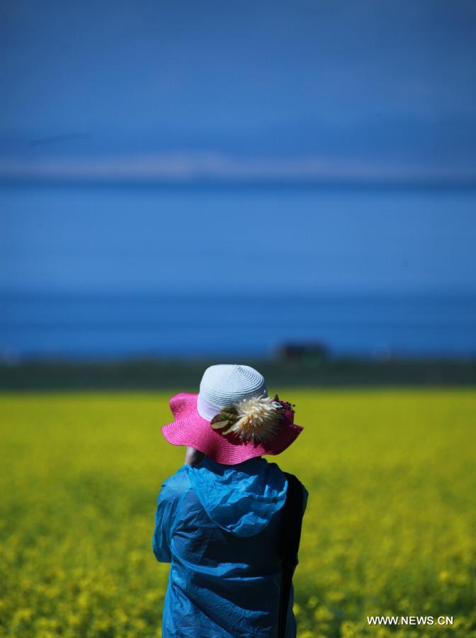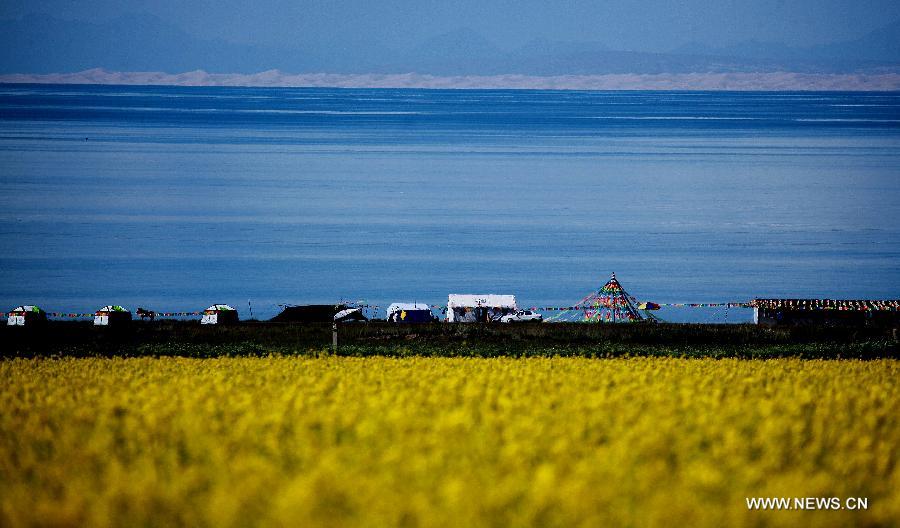 Photo taken on July 15, 2013 shows an ethnic tourist spot beside the Qinghai Lake in northwest China's Qinghai Province. Qinghai Plateau attacts many tourists for its brisk weather in summer. (Xinhua/Yang Shoude)