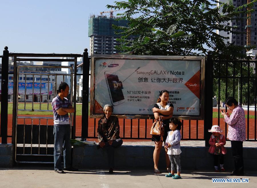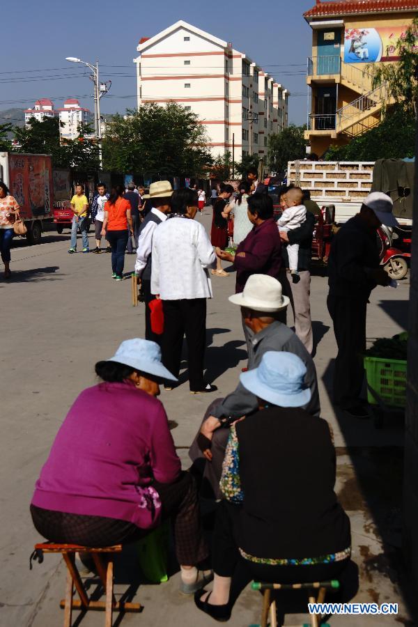 Residents stay outside to escape the earthquake in Dingxi City, northwest China's Gansu Province, July 22, 2013. A 6.6-magnitude earthquake jolted a juncture region of Minxian County and Zhangxian County in Dingxi City Monday morning. (Xinhua/Wang Hongbin)