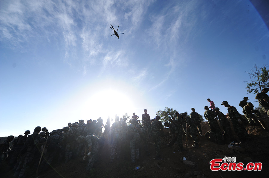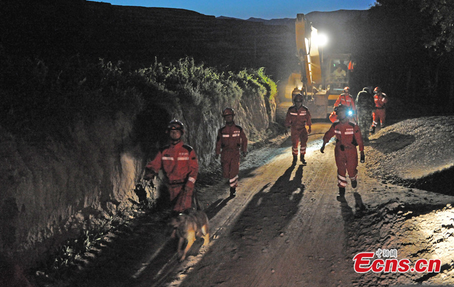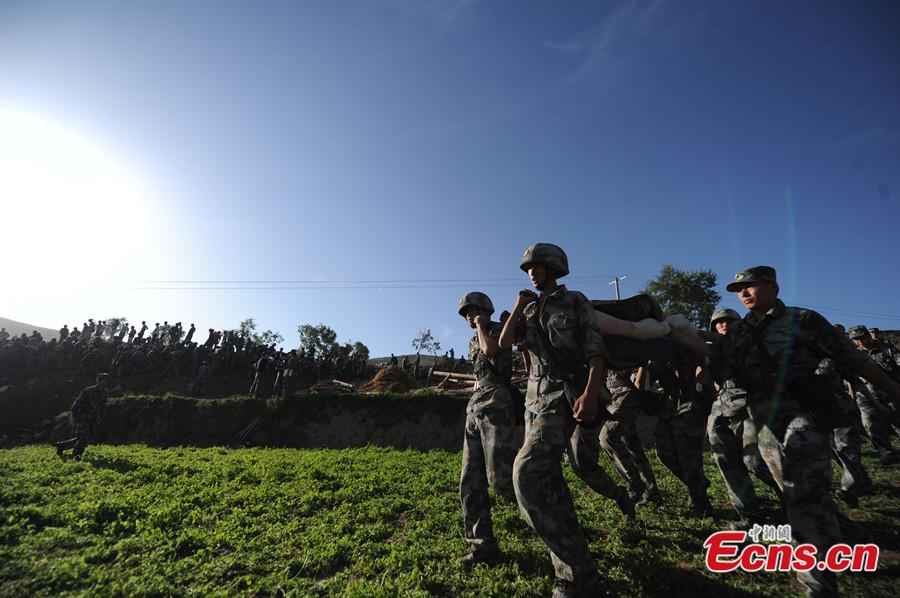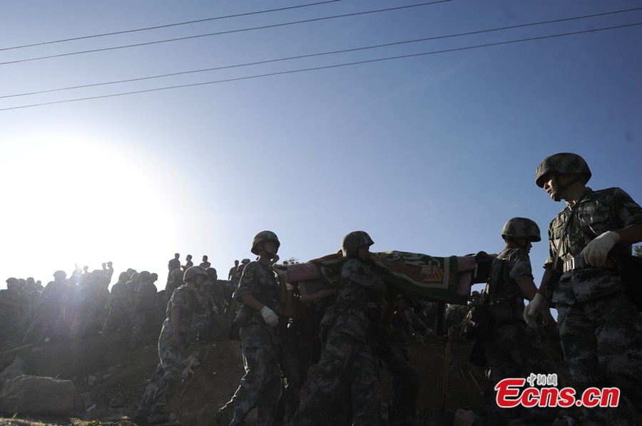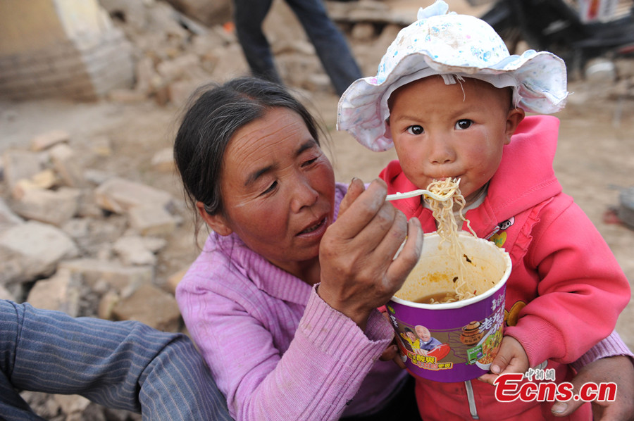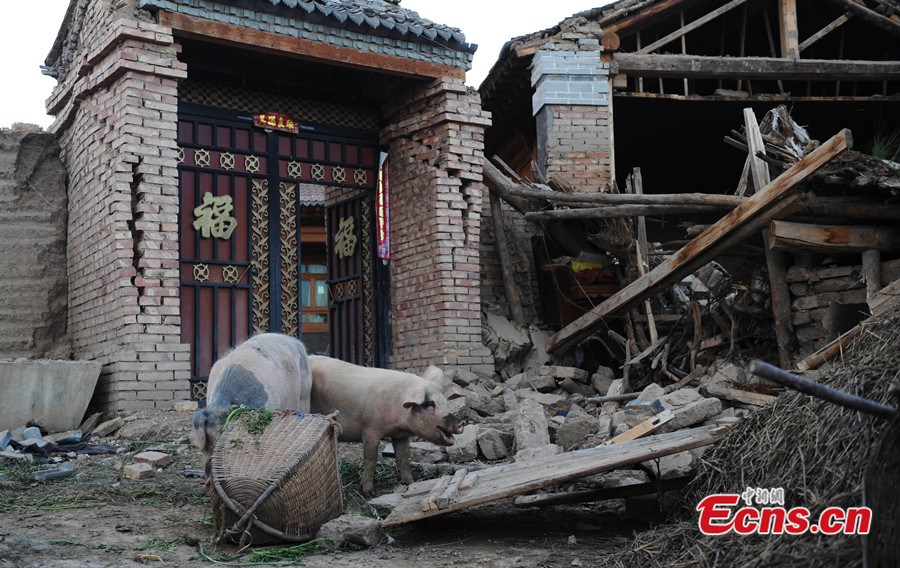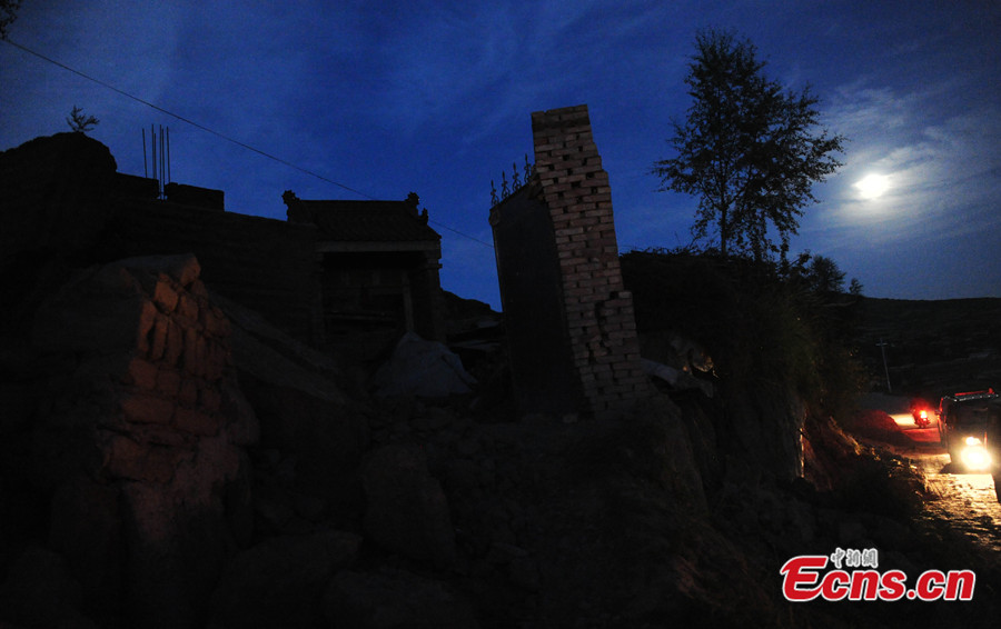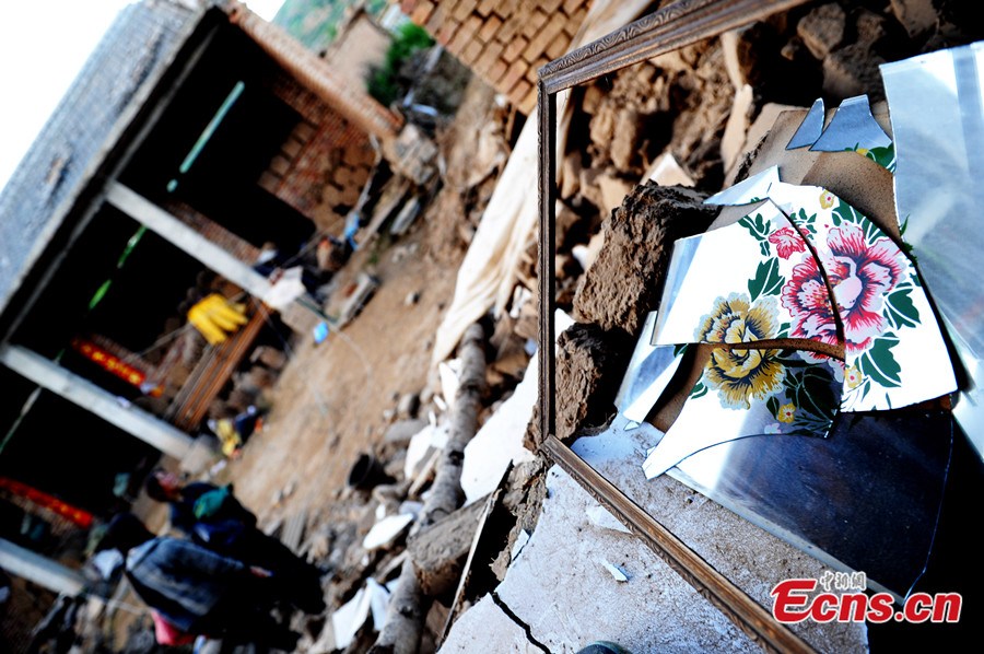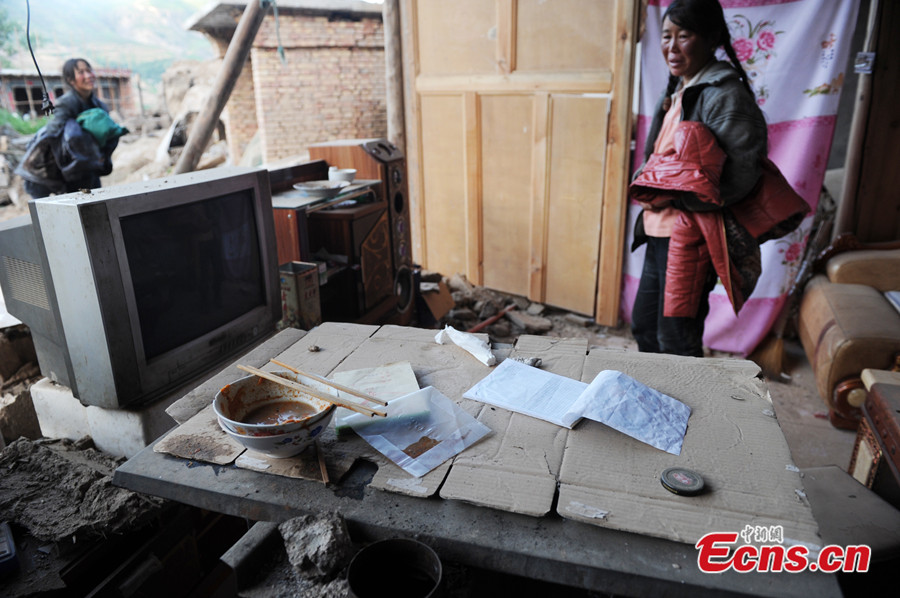 Photo taken on July 22 shows a Yongguang Village resident in her house damaged by the 6.6-magnitude earthquake which jolted a juncture region of Minxian County and Zhangxian County in Dingxi City, Northwest China's Gansu Province on Monday morning. (Photo / Yang Yanmin)