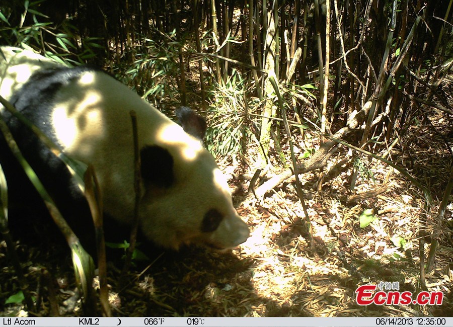 Staff from the Shenguozhang Giant Panda Nature Reserve recently found two photos of wild pandas while organizing infrared camera pictures. It’s the nature reserve's first time to capture wild panda photos. Established in October 2000, the Shenguozhang Giant Panda Nature Reserve is located in the Yuexi County of Liangshan Yi Autonomous Prefecture, Southwest China’s Sichuan Province. [Photo/ Shenguozhang Giant Panda Nature Reserve]