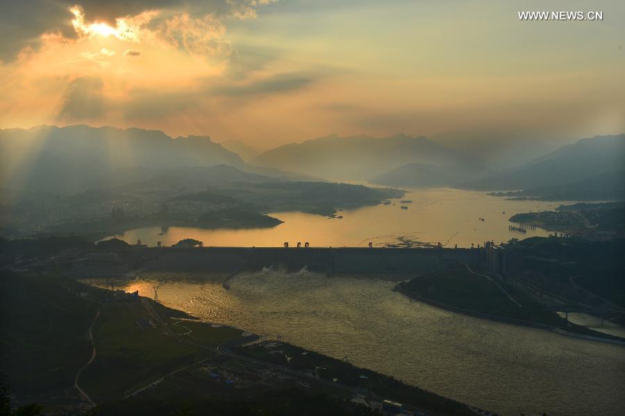 Flood water is discharged from the Three Gorges Dam, a gigantic hydropower project on the Yangtze River, in Yichang City, central China's Hubei Province, July 24, 2013. The Yangtze River, China's longest, has braced for its largest flood peak so far this year due to continuous rainfall upstream. (Xinhua/Zheng Jiayu)