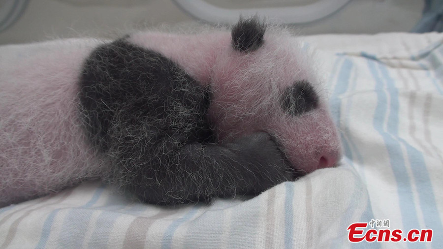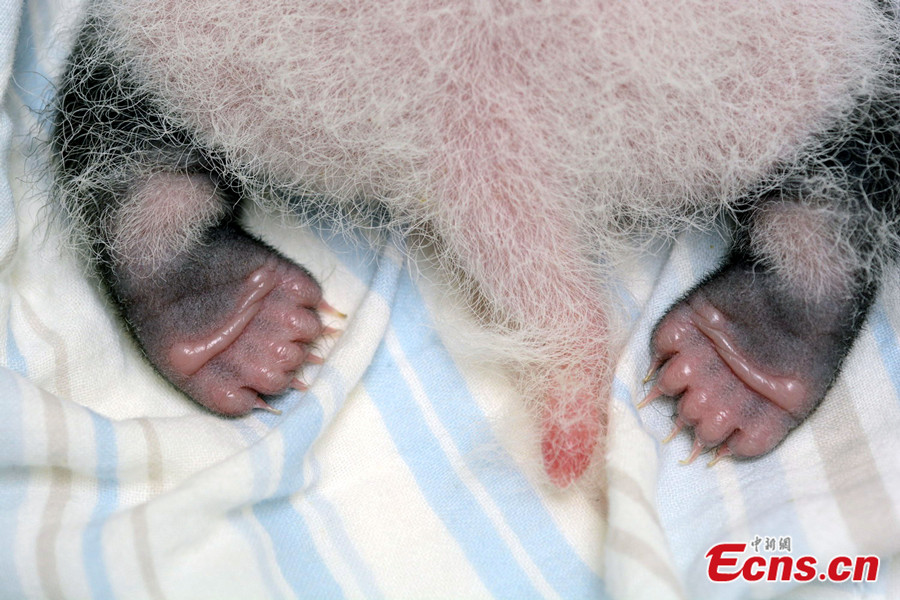 Taipei Zoo released photos of a newly-born panda, Yuan Zai, on July 28, 2013. The three-week-old baby panda was born to Tuan Tuan and Yuan Yuan, the pair of pandas who were donated by the mainland to the Taiwan zoo five years ago. [Photo/ Taipei Zoo]