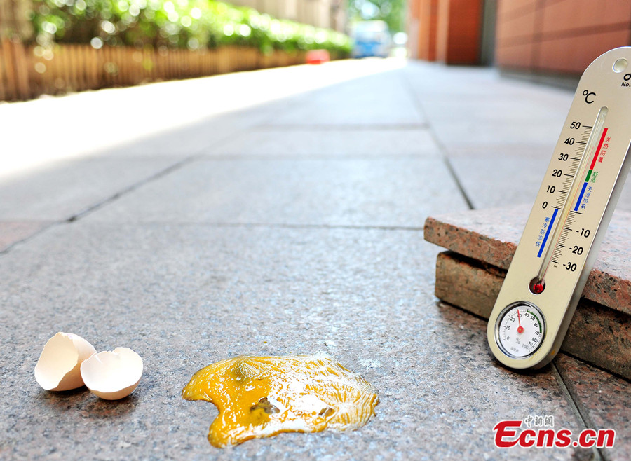 Yesterday made it officially the hottest July in Shanghai's recorded history after the high reached 39.4 degrees Celsius, the 24th high temperature day this month. Making the best out of a hot situation, Shanghai locals including netizens and news reporters posted "outdoor barbecue" photos online, showing how different foods, from sliced pork to shrimp to eggs, are quickly cooked under sizzling heat on the street or on a balcony. It's reported the mercury is likely to stay around 39 degrees today and in the coming days. [Photo: CNS / Yuan Jing]