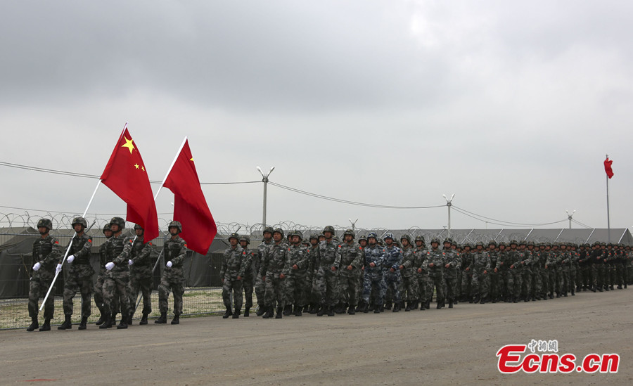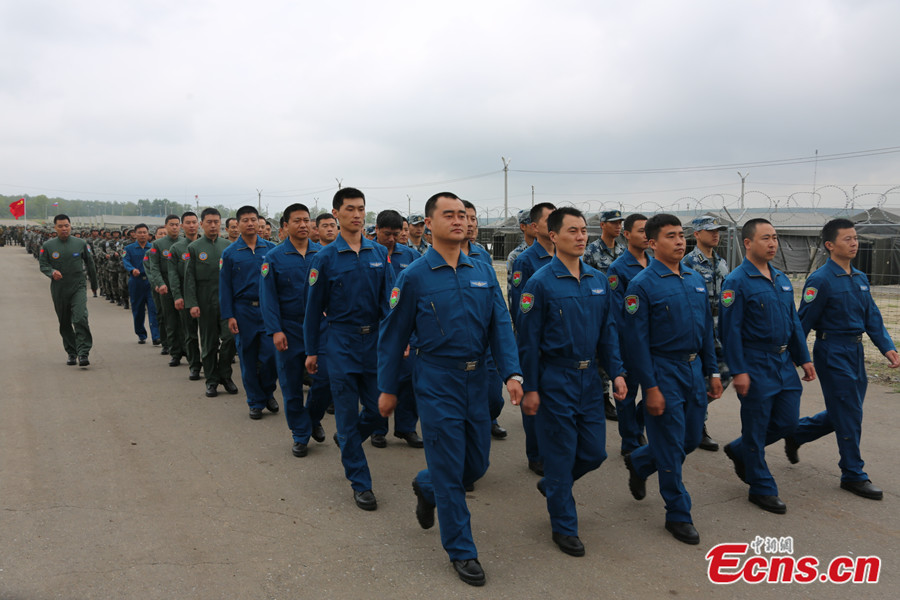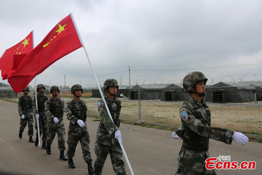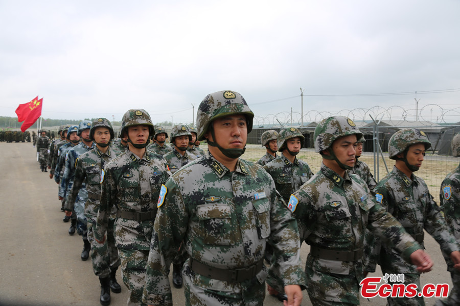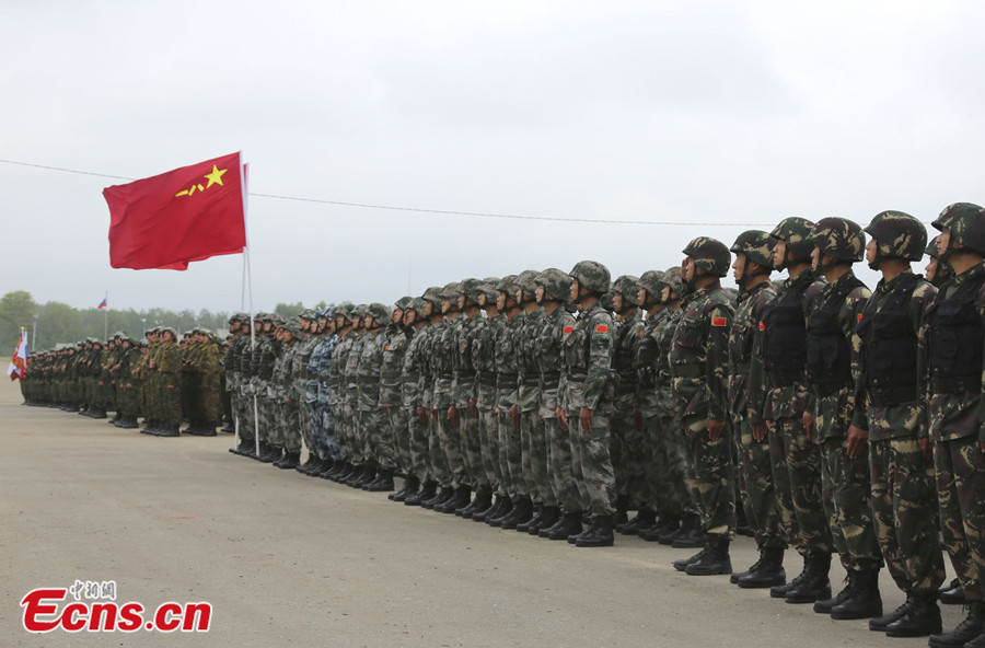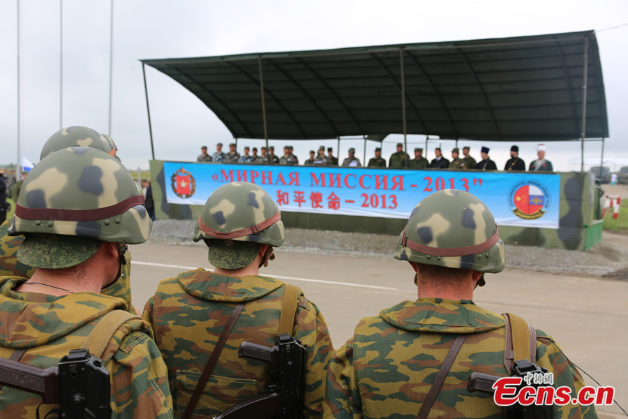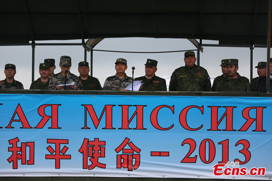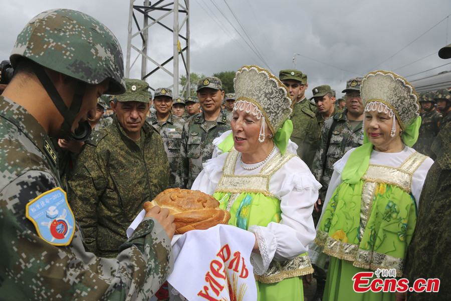 Photo taken on August 2 shows Chinese soldiers are welcomed by local residents in Chelyabinsk, Russia. China's troops are here to take part in the China-Russia joint drill, code-named Peace Mission - 2013, which takes place in Chelyabinsk in Russia's Ural Mountainous region from July 27 to August 15. [Photo: CNS / Li Xiang]
