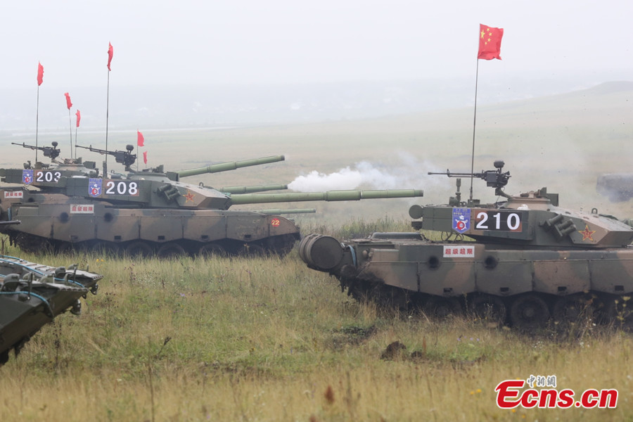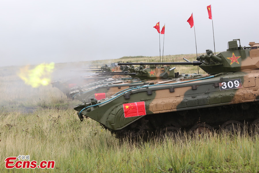 Heavy weaponry from the People's Liberation Army (PLA) is seen during the Peace Mission-2013 China-Russia joint military drill in Chelyabinsk of Russia on August 8, 2013. [Photo: CNS / Xian Yunqiang]