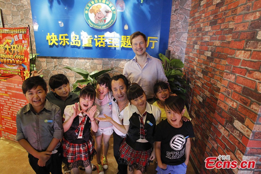 Photo taken on August 19 shows a waitress, who is about 130 centimeters tall, works at a restaurant in Henan province. The restaurant is run by over 20 persons, who are in their twenties and about 130 centimeters tall on average. They all come from a local art troupe. [Photo: CNS / Wang Zhongju]