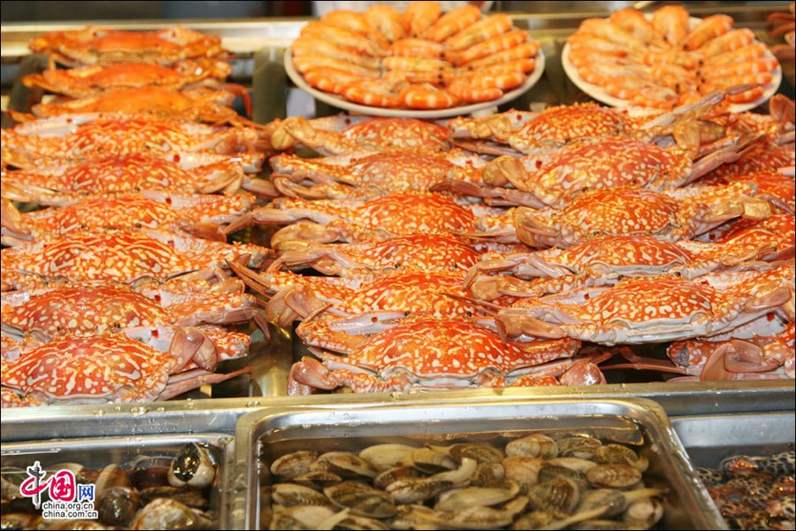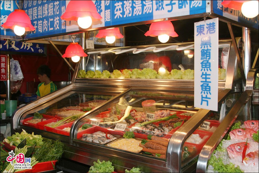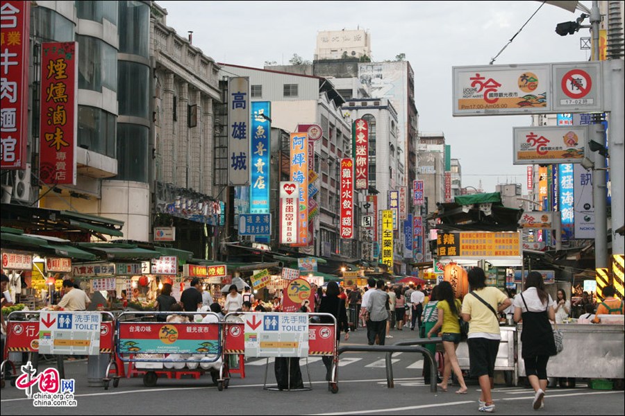 Photo shows the Liouhe Night Market in Kaohsiung city, China's Taiwan. Liouhe Night Market in Kaohsiung is a favorite dining place for both residents and tourists. [China.org.cn]