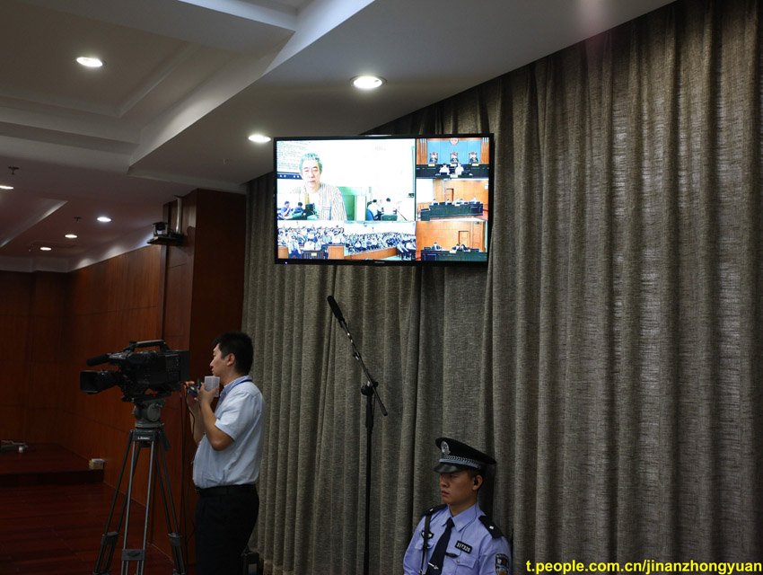 Bo Xilai stands open trial at the Jinan Intermediate People's Court on August 22 for charges of bribery, graft and abuse of power. The trail continued at 8:39 a.m. today. (Photo: people.com.cn)