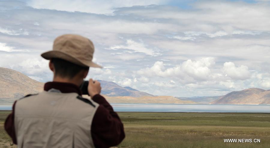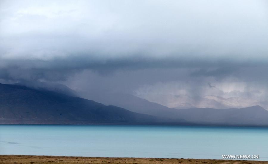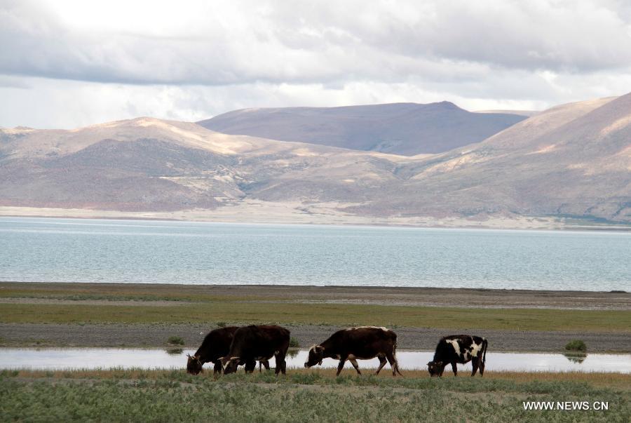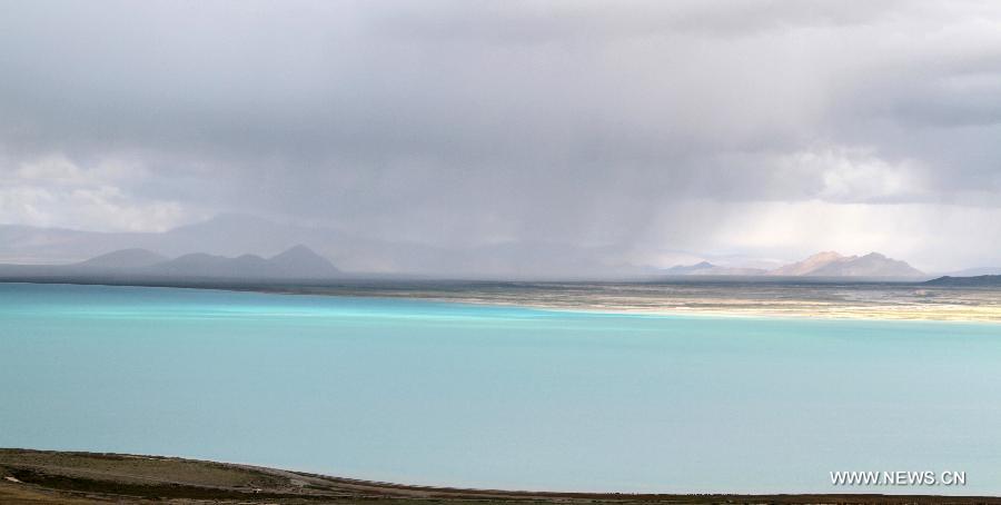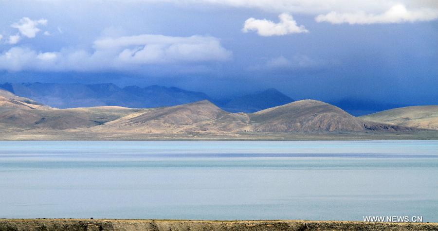 Photo taken on Aug. 21, 2013 shows the Baiku Co Lake in Xigaze, southwest China's Tibet Autonomous Region. Baiku Co, with an elevation of 4,590 meters, is the largest lake in Xigaze. (Xinhua/Wang Yunjia)