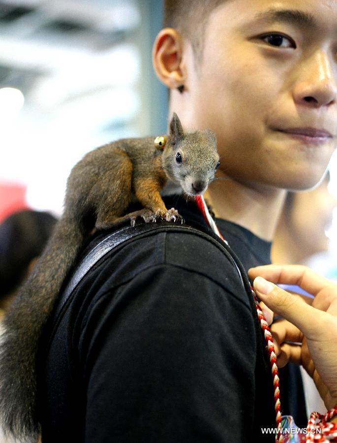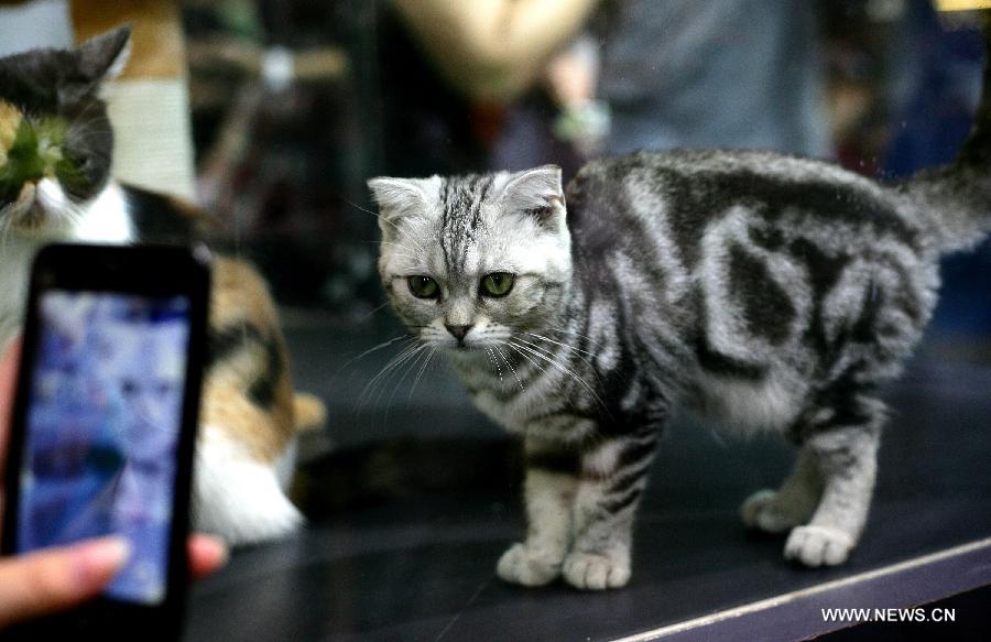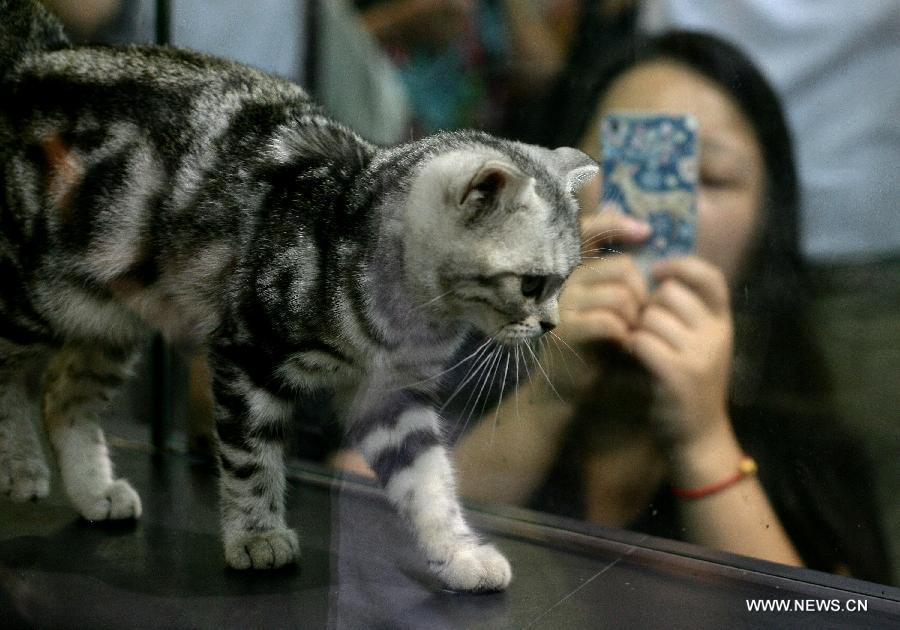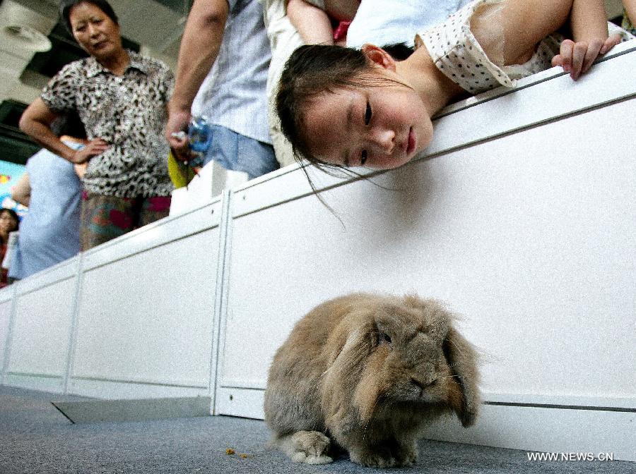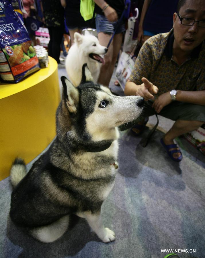 Dogs are seen at the Pet Fair Asia 2013 in Shanghai, east China, Aug. 24, 2013. (Xinhua/Ding Ting)