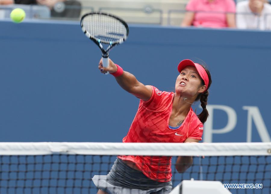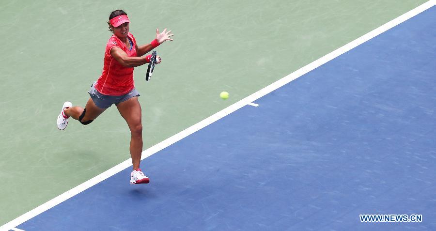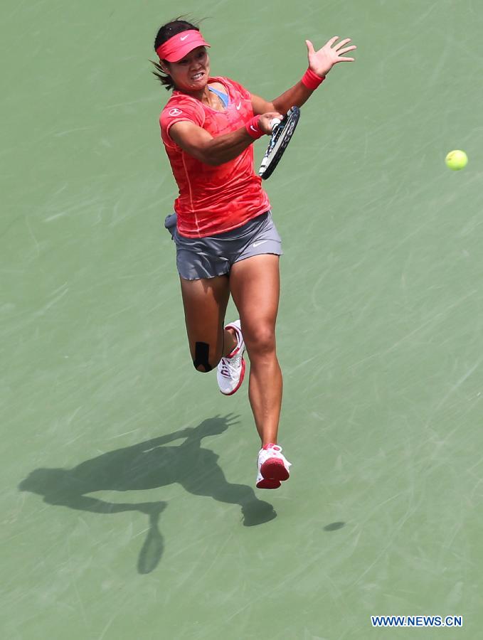 China's Li Na hits a return during the women's singles second round match against Sweden's Arvidsson at the U.S. Open tennis championships in New York, Aug. 28, 2013. Li Na won 2-0. (Xinhua/Fang Zhe)