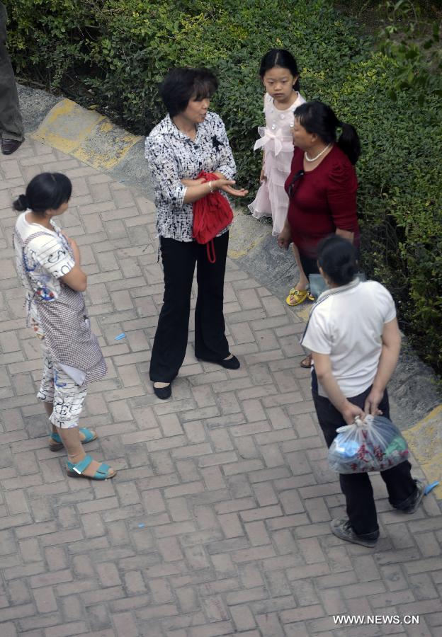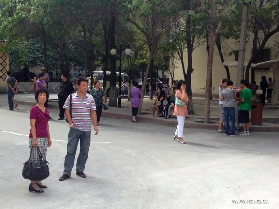 People stand outdoors after an earthquake in Urumqi, capital of northwest China's Xinjiang Uygur Autonomous Region, Aug. 30, 2013. A 5.1-magnitude earthquake jolted Urumqi at 01:27 p.m. Friday Beijing Time, according to the China Earthquake Networks Center (CENC). (Xinhua/Zhao Ge)