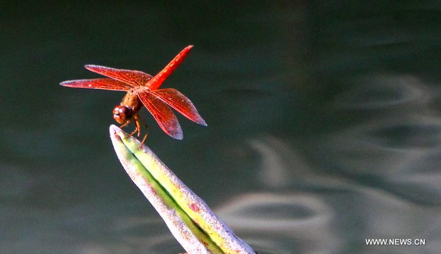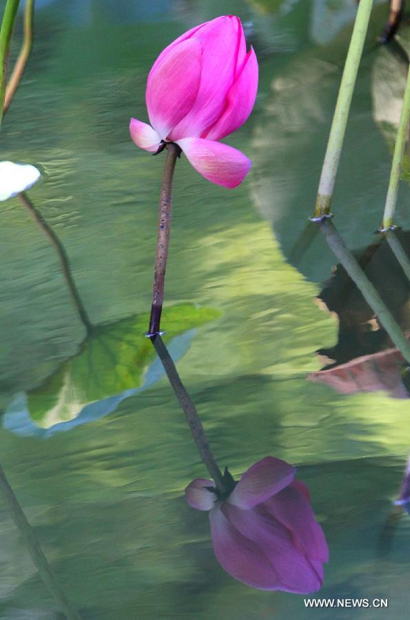 Photo taken on Sept. 1, 2013 shows a lotus flower at Suzhou Park in Suzhou, east China's Jiangsu Province. (Xinhua/Wang Jianzhong)