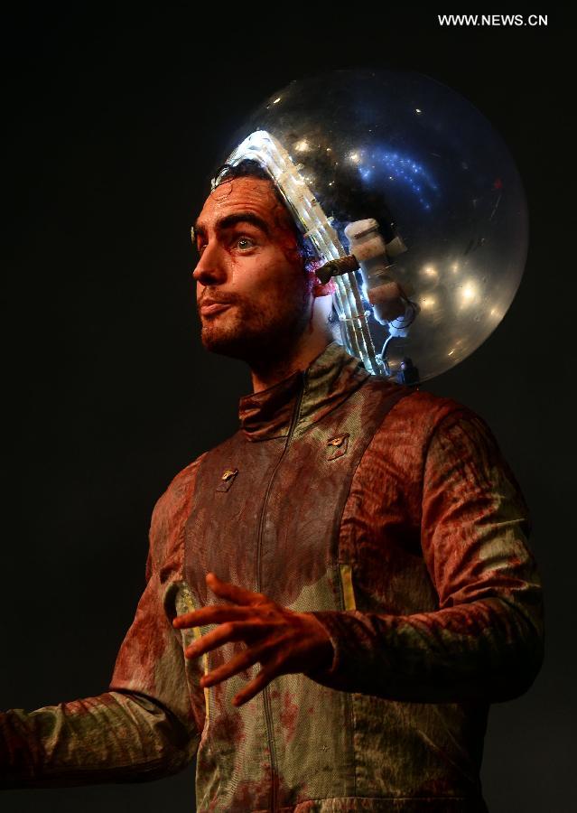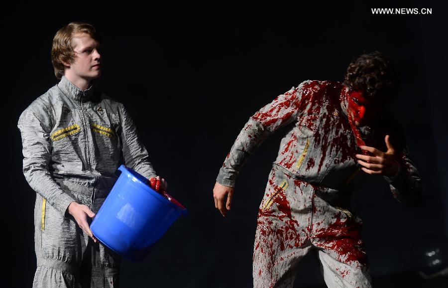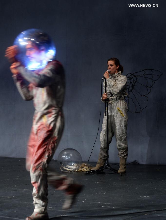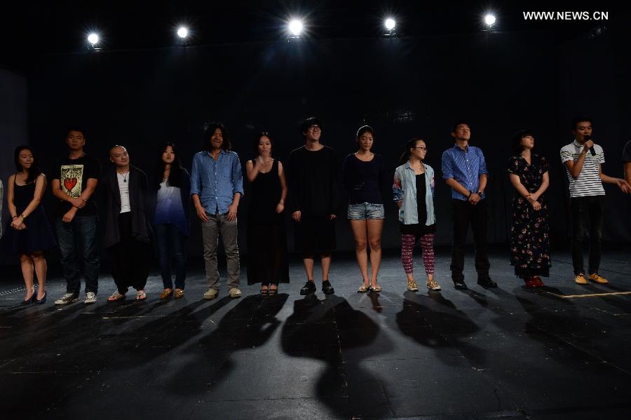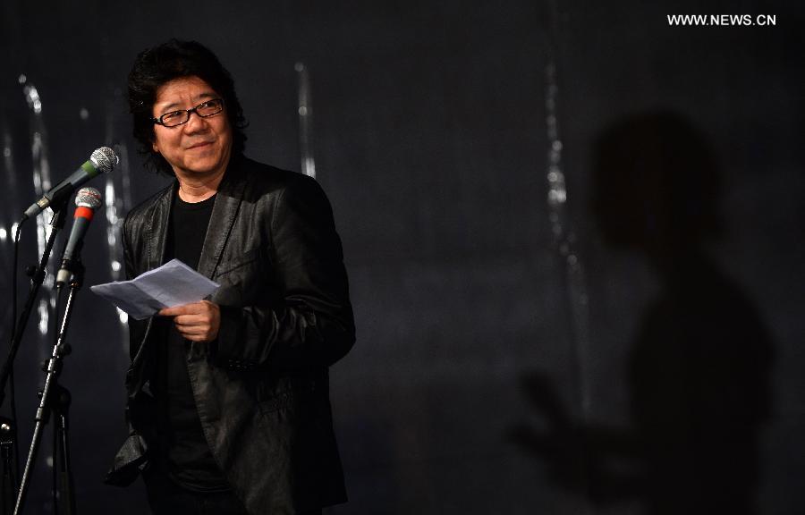Art director Meng Jinghui addresses the opening ceremony of the 2013 Beijing Fringe Festival at the National Center for the Performing Arts (NCPA) in Beijing, capital of China, Sept. 3, 2013. A total of 58 performances from 12 countries and regions will be staged at the 27-day festival that kicked off on Tuesday. (Xinhua/Jin Liangkuai)