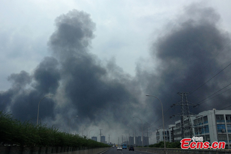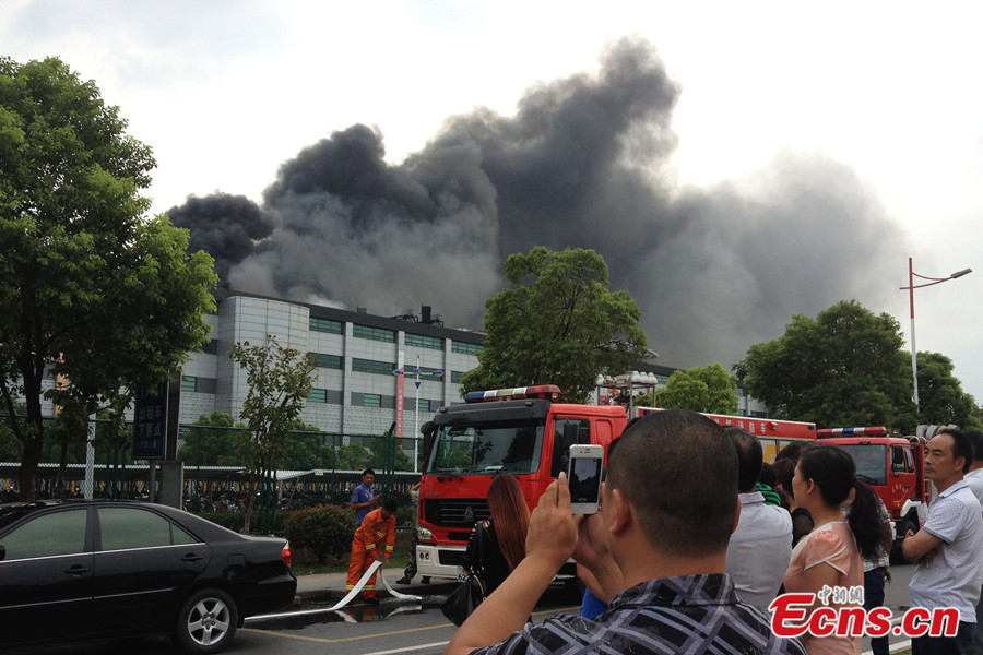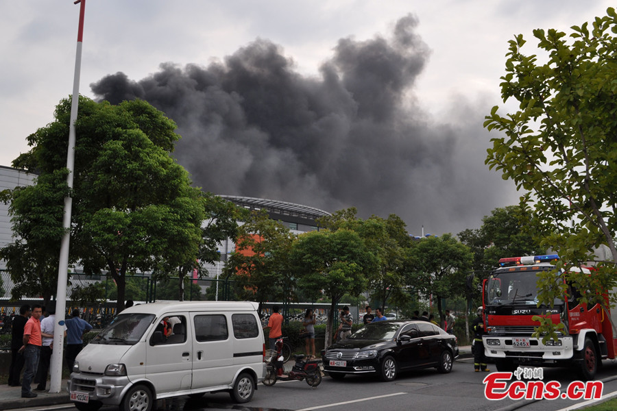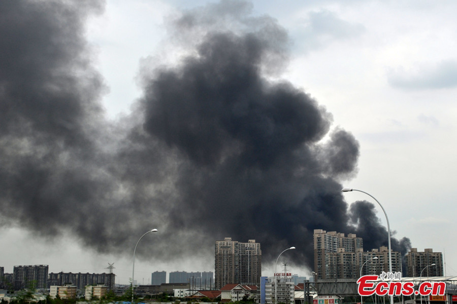 A massive fire breaks out at a SK Hynix production facility in Wuxi New District of east China's Jiangsu province on September 4, 2013. [Photo: CNS / Sun Quan]