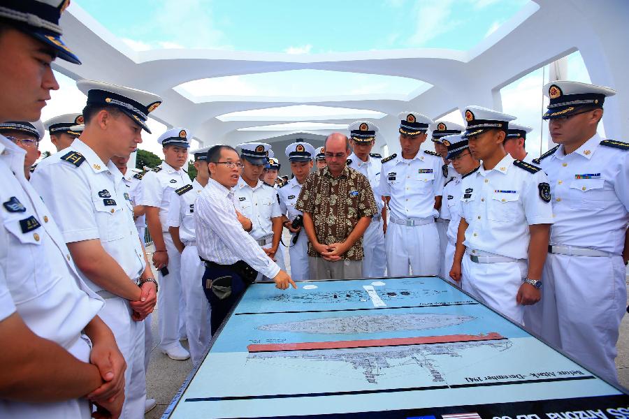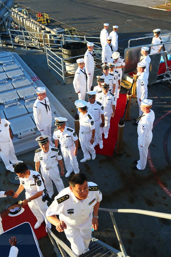 A naval fleet of the Chinese People's Liberation Army (PLA) is seen at the Pearl Harbor in Hawaii, the United States, Sept. 7, 2013. The fleet arrived here on Friday for a three-day friendly visit. (Xinhua/Zha Chunming)