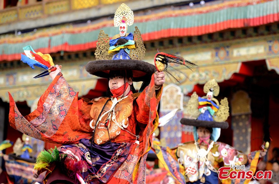 Tibetan monks celebrate annual religious dance festival (1/9)