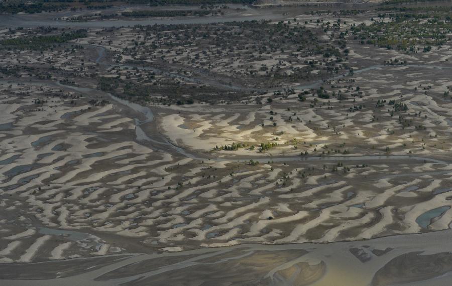 The aerial photo taken on Sept. 15, 2013 shows the scenery of snow mountains of the Qinghai-Tibet Plateau in southwest China's Tibet Autonomous Region. (Xinhua/Purbu Zhaxi)