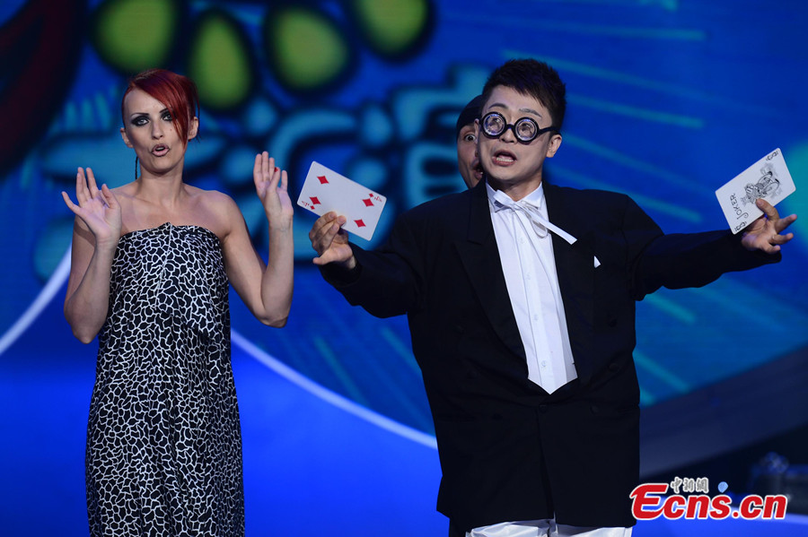 A humor extravaganza finishes recording recently and will be broadcasted on the general channel of China Central Television (CCTV) during upcoming three-day Mid-Autumn Festival holiday. The extravaganza attracts top comedians, humor actors, magic performers and acrobats across the world. [Photo: China News Service/Li Xueshi]