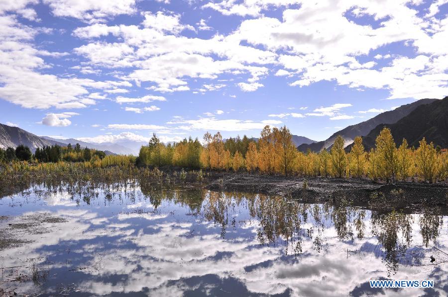 Photo taken on Sept. 16, 2013 shows the scenery of the Lhasa River in Lhasa, capital of southwest China's Tibet Autonomous Region. (Xinhua/Liu Kun)