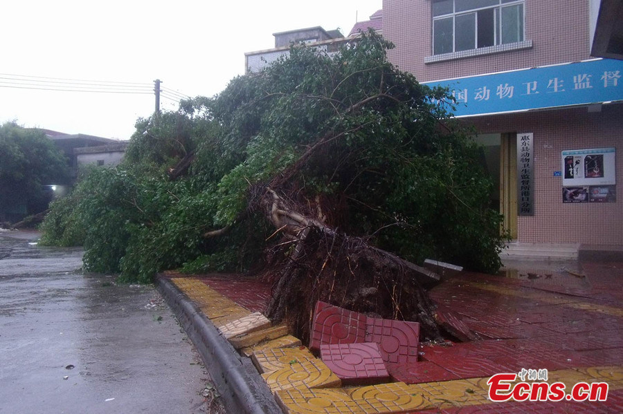 Photo taken on September 23, 2013 shows an uprooted tree at Huidong County of Huizhou City in south China's Guangdong province. The county hit by Typhoon Usagi Sunday night with maximum windforce reaching level 14. Typhoon Usagi has killed at least 25 people after making landfall in Guangdong Province Sunday evening, according to the provincial flood control headquarters on Monday. [Photo: China News Service / Yan Chu]