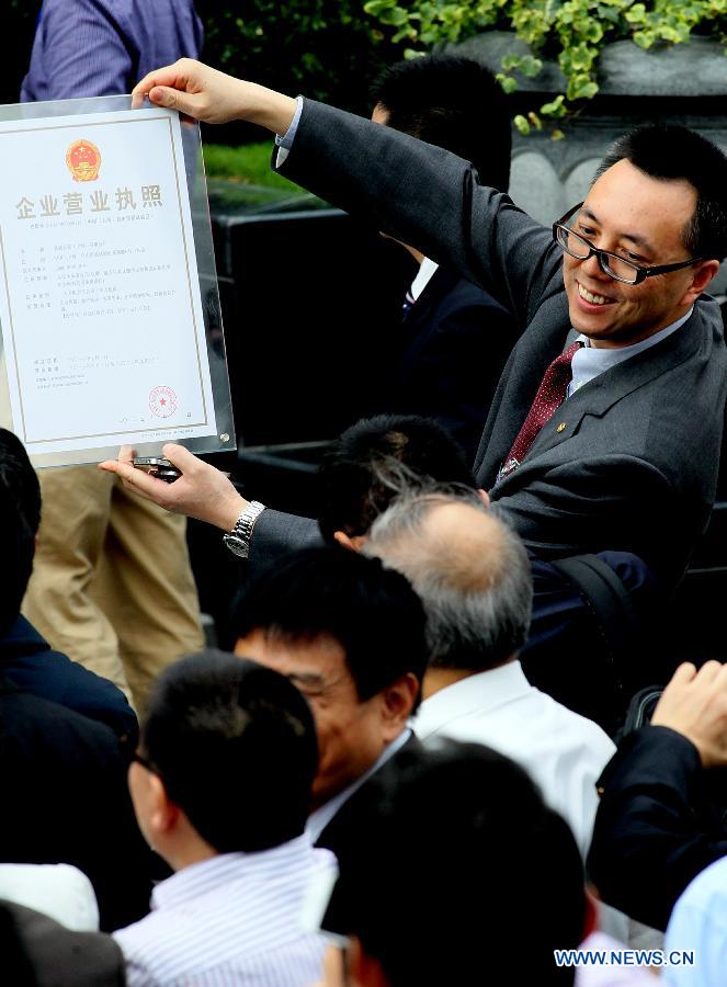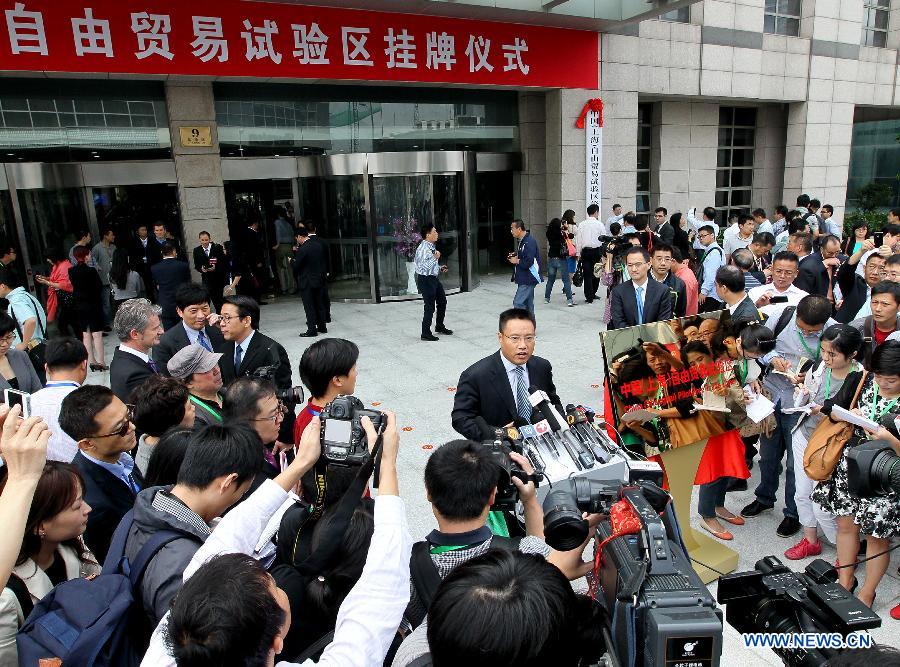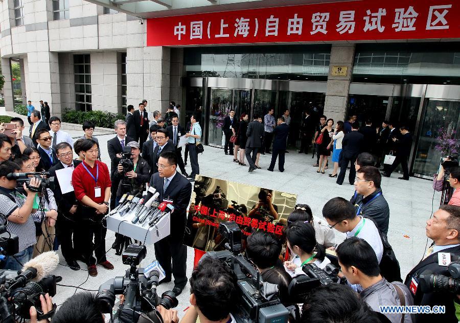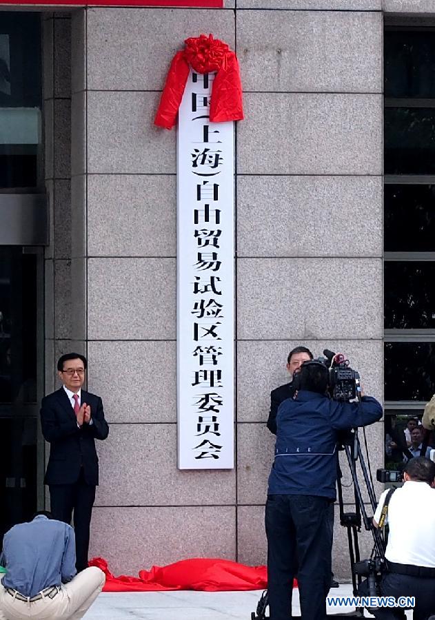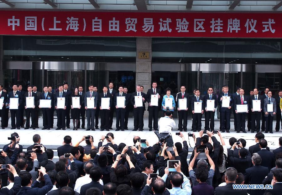 An inauguration ceremony is held to celebrate the operation of the Shanghai pilot free trade zone at the Waigaoqiao Bonded Area in Shanghai, east China, Sept. 29, 2013. (Xinhua/Chen Fei)