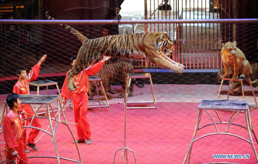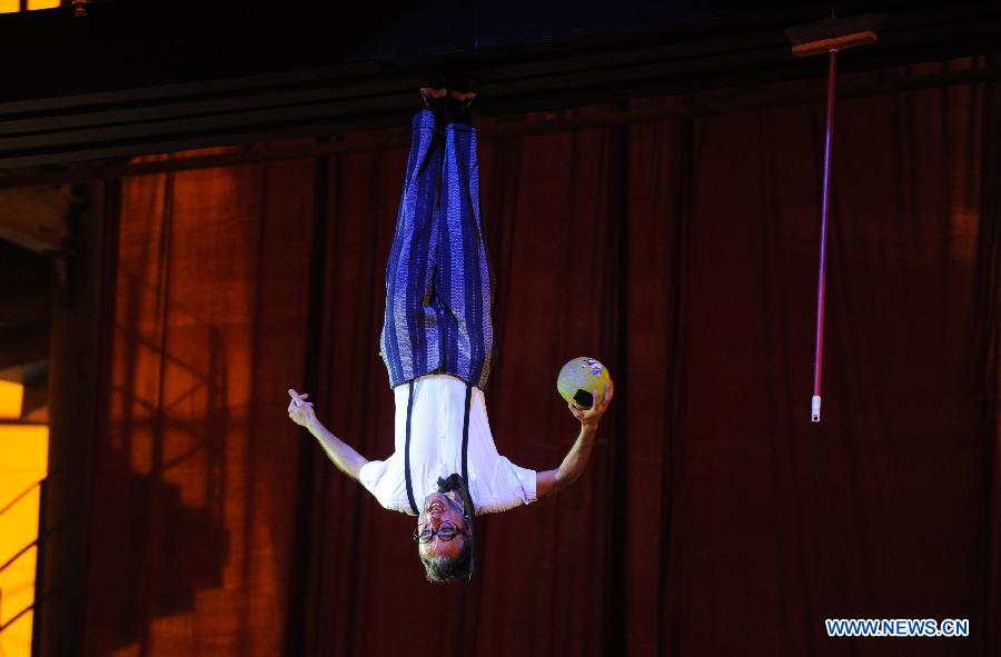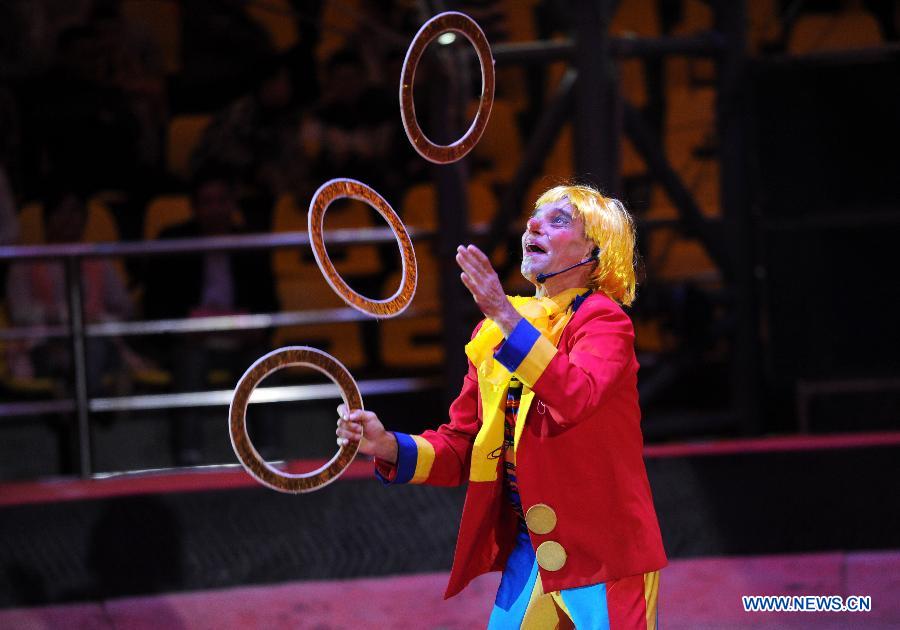 A clown performs during the 2013 Nanchang International Circus Festival in Nanchang, capital of east China's Jiangxi Province, Sept. 28, 2013. Opened Saturday, the festival features top circuses from twelve countries including Russia, Ukraine, Israel, Poland and France. (Xinhua/Zhou Ke)