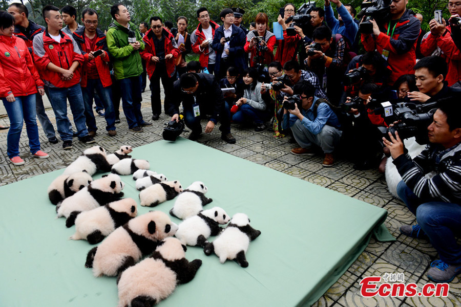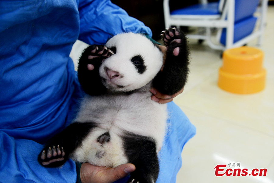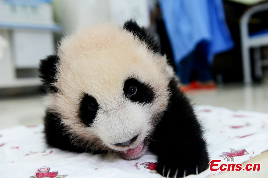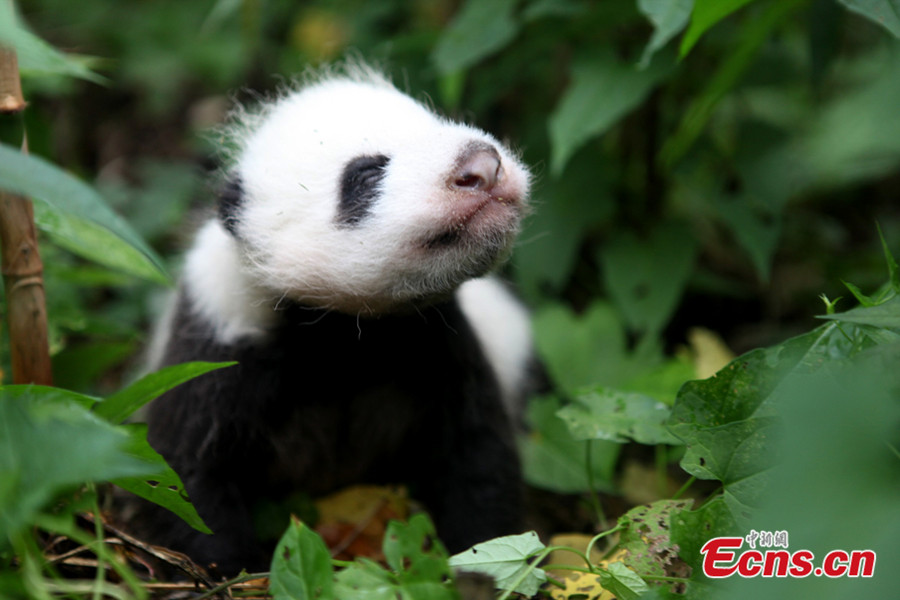 Photo taken on September 29, 2013 shows panda cubs at the China Conservation and Research Center for the Giant Panda in the Wolong Nature Reserve of southwest China's Sichuan province. The oldest of them is three months old and the youngest is under one month. [Photo/Heng Yi]