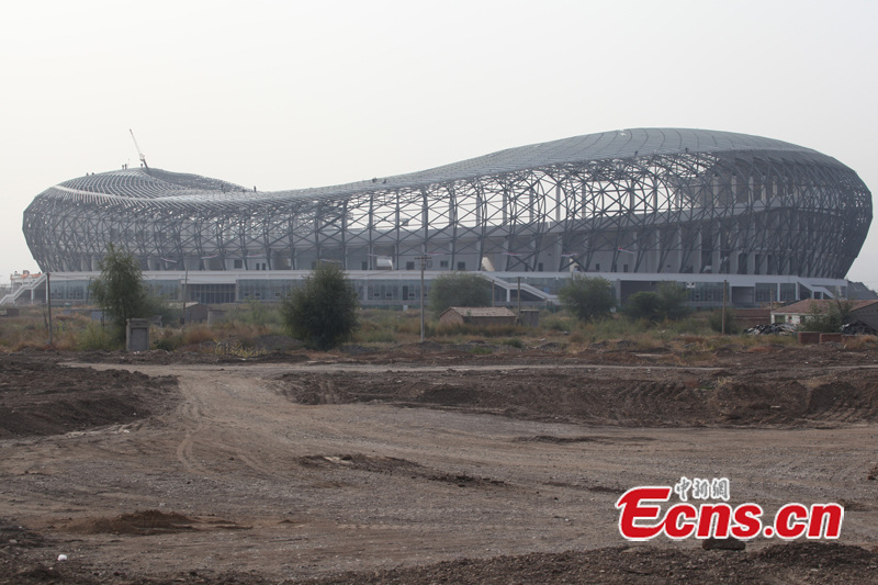 Photo shows a stadium under construction in Chifeng, Inner Mongolia on Sept 30, 2013. The ongoing project looks like the Bird's Nest in Beijing, which was the main venue of the 2008 Summer Olympics and Paralympics. (Photo: Li Fu/China News Service)