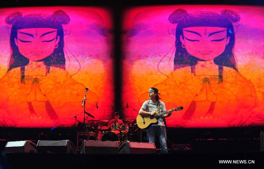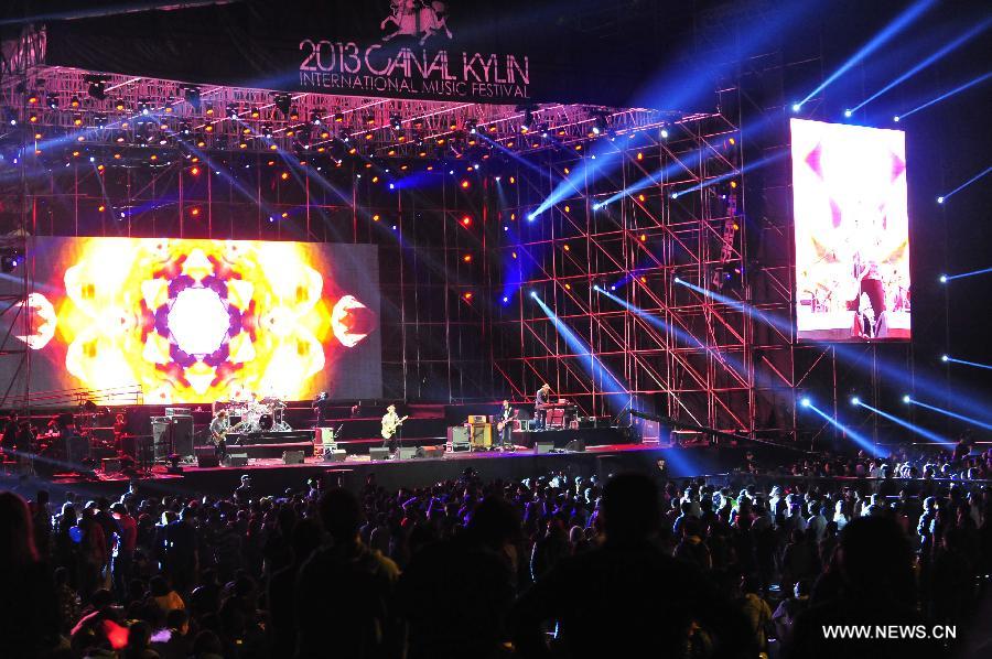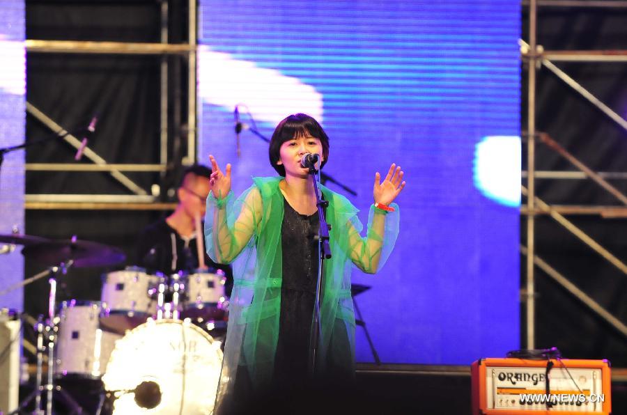 Zhang Xuan performs during the 2013 Canal Kylin International Music Festival in Beijing, capital of China, Oct. 1, 2013. The music festival kicked off in the Tongzhou canal park on Tuesday. (Xinhua/Xiao Xiao)