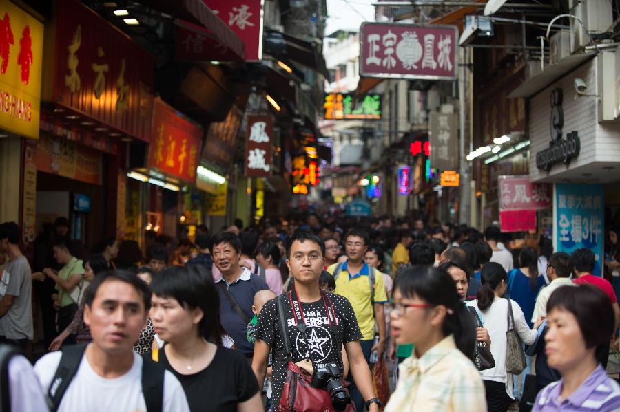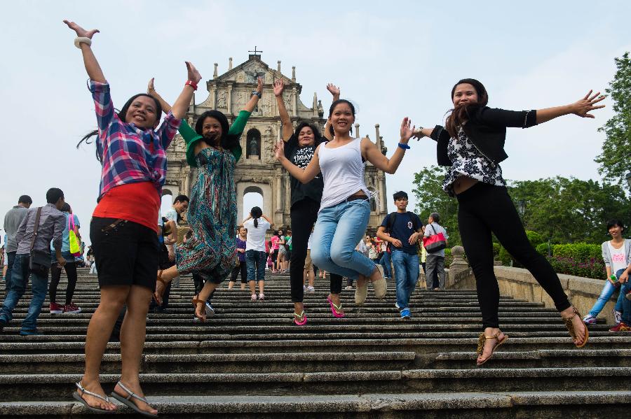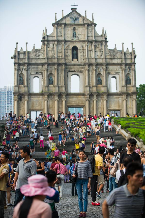 Tourists visit the Ruins of St. Paul's in Macao, south China, Oct. 1, 2013, the first day of the seven-day national holidays. (Xinhua/Cheong Kam Ka)