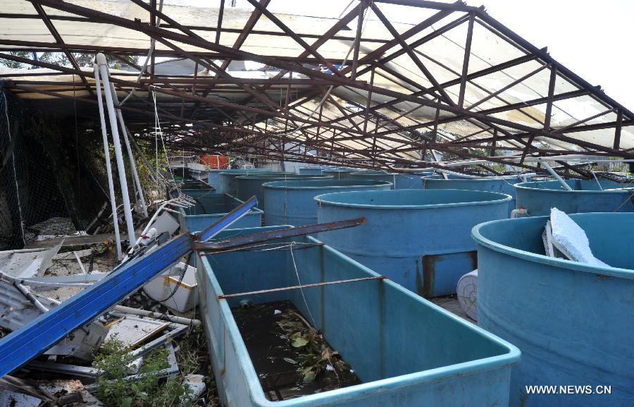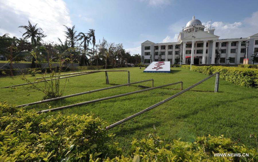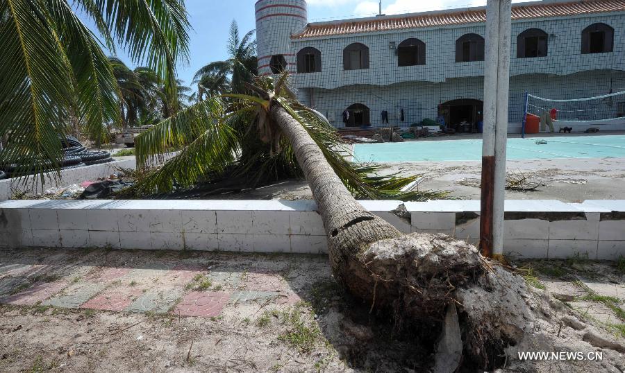 Photo taken on Oct. 2, 2013 shows a coconut tree blown down by the Typhoon Wutip in Sansha City, south China's Hainan Province. According to the local government, the typhoon has collapsed 103 houses and damaged more than 80 ships in the city. (Xinhua/Zhao Yingquan)