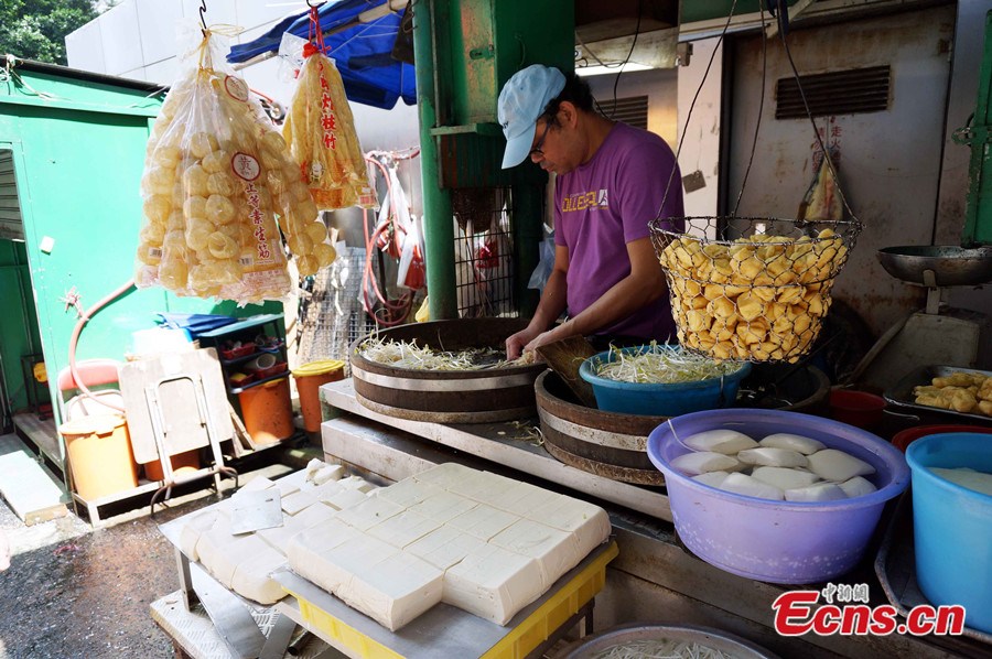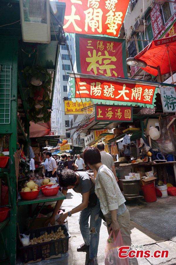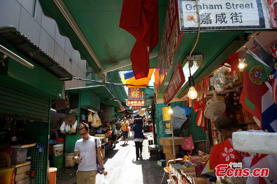 Located in Central, on Hong Kong Island, Graham Street Market is 160 years old and is Hong Kong's oldest continuously-operating street market. The street is narrow but allows a row of stalls on either sides and sells fresh food like seafood, vegetables, meats and other dry goods. [Photo: China News Service / Sha Shaokui]