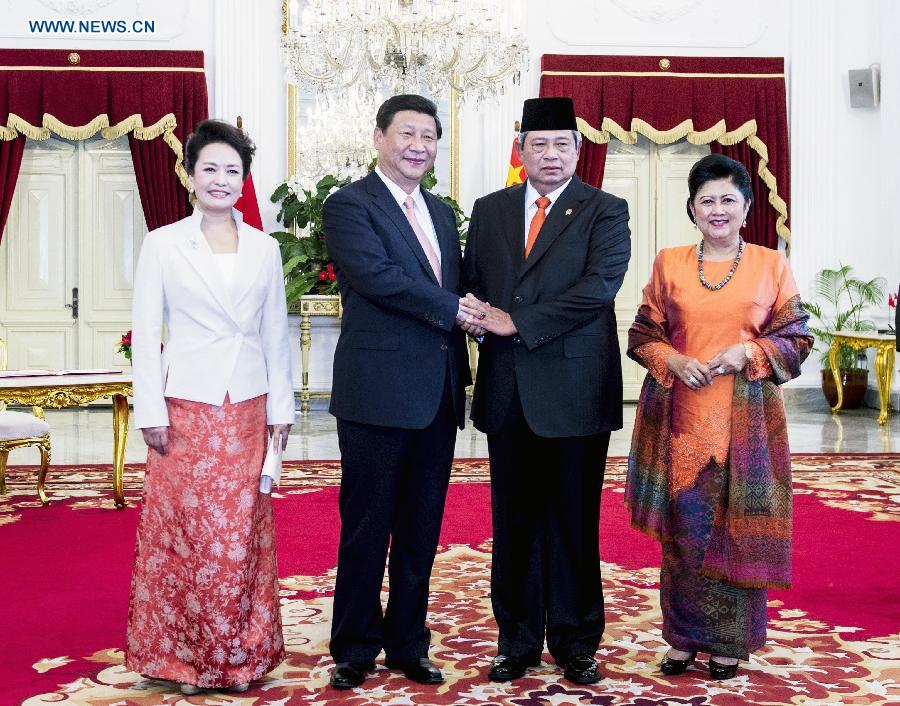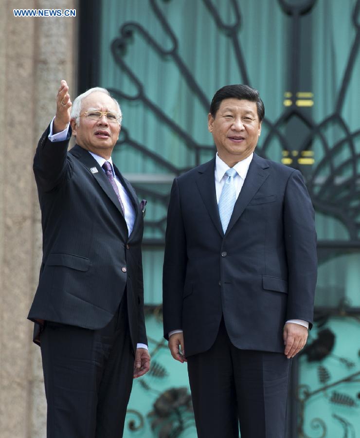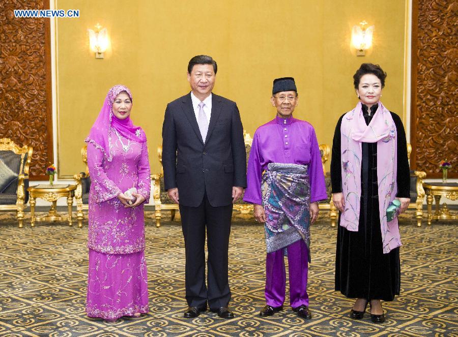 Chinese President Xi Jinping and his wife Peng Liyuan wave upon their arrival in Kuala Lumpur, capital of Malaysia, Oct. 3, 2013. Xi started a state visit to Malaysia on Thursday. (Xinhua/Xie Huanchi)
